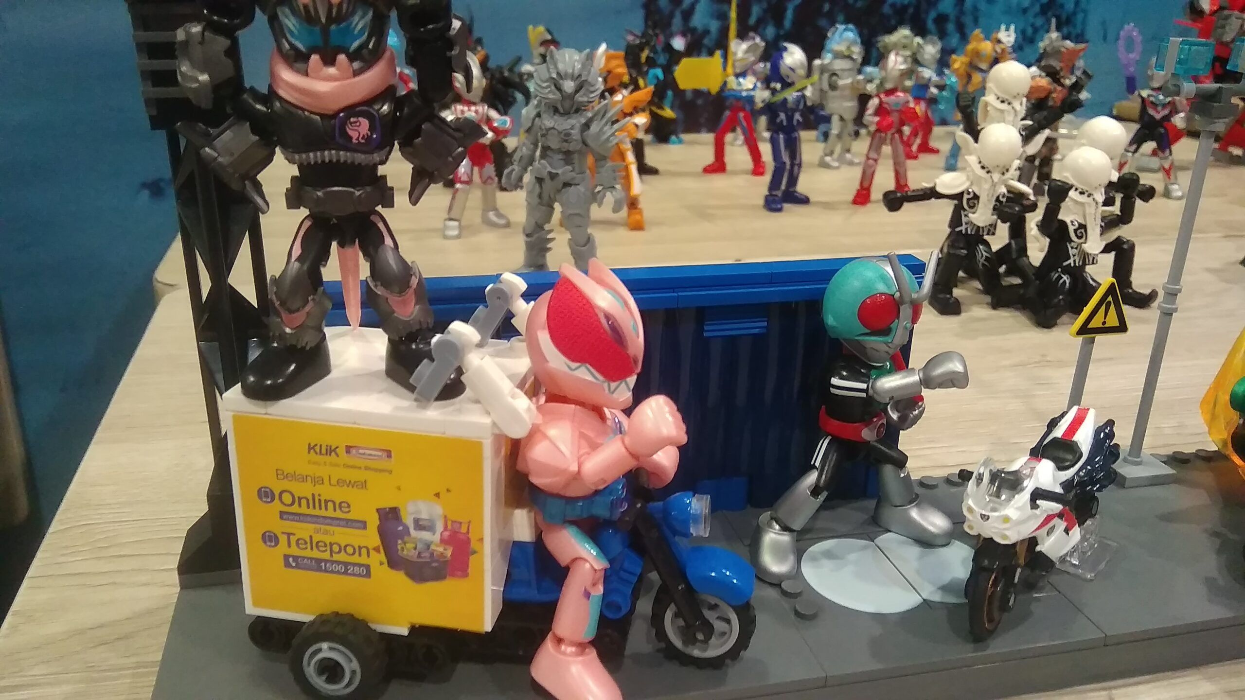 Melanjut kita ke Booth Mecha Musume, di sini kita mengambil banyak foto-foto display diorama action figures. Dan sangat mengejutkan kitapun dikasih sebuah challenge untuk bermain Ultraman Card Game. Meskipun baru pertama kali mencoba bermain tapi kami berhasil memenangkan challenge tersebut dan memenangkan hadiah satu pack Ultraman Card Game, lengkap dengan semua kartu dan areanya. Tidak lupa kami juga sempat mengunjungi Samarinda Diecast, dan diizinkan untuk foto-foto diorama miniatur di sana. Mobil diecast yang ada di foto adalah mobil diecast milik dari tim KAORI Samarinda, yakni diecast Hotwheels dan Majorette.