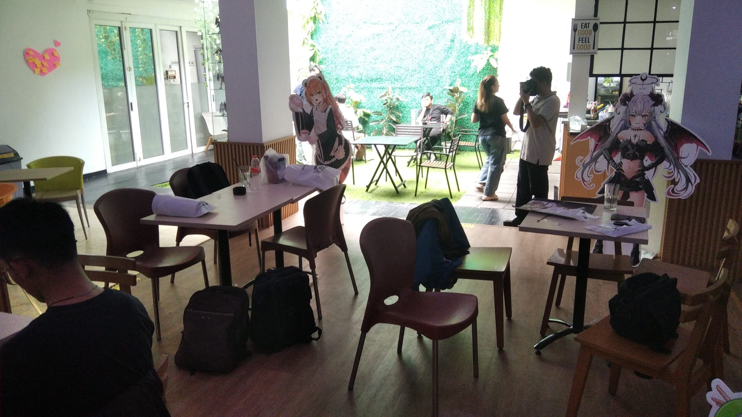 Menurut Rifqi, ia juga menjelaskan bahwa timnya bertugas dalam mendekorasi area acara, memasang banner di depan restoran, serta mengurus merchandis acara. Selain itu, timnya juga memberi briefing kepada panitia acara, talent cosplayer, serta VTuber Livium, agar acaranya bisa berjalan dari awal hingga akhir.