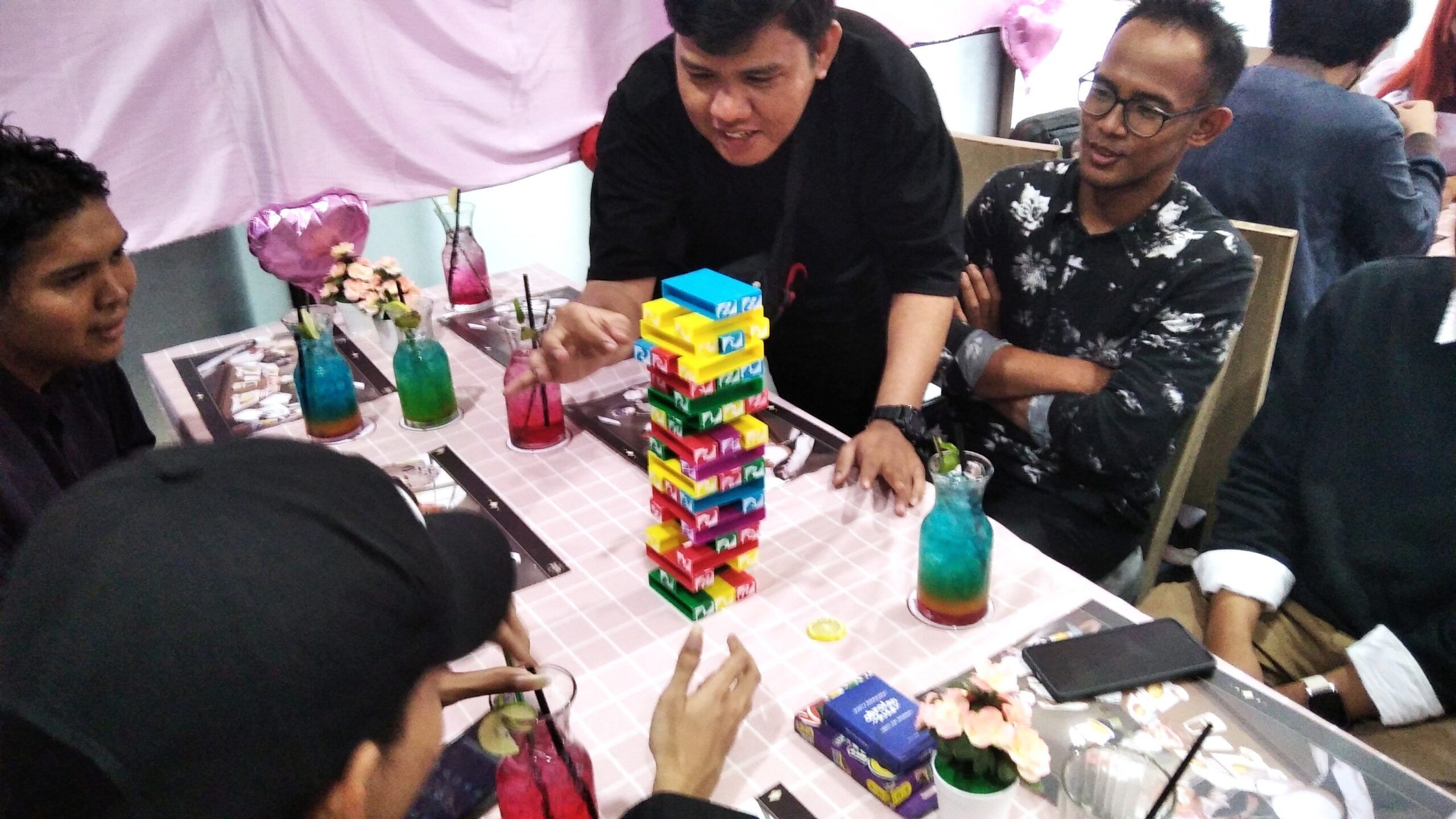 Di depan restoran, saya disambut oleh banner acara yang mencolok, juga dengan patung Gundam yang iconic itu. Begitu masuk ke dalam restorannya, sudah ada banyak pengunjung yang mengikuti acaranya dan panitia Livium yang sedang bertugas. Setelah masuk, saya disambut oleh Irfan Dhaniwara, salah satu panitia acara ini, bersama dengan timnya. Setelah berkenalan, saya diperbolehkan untuk mengambil gambar dan video di sekeliling area acara, termasuk ruang acara utamanya yang dilapisi oleh karton warna merah muda.