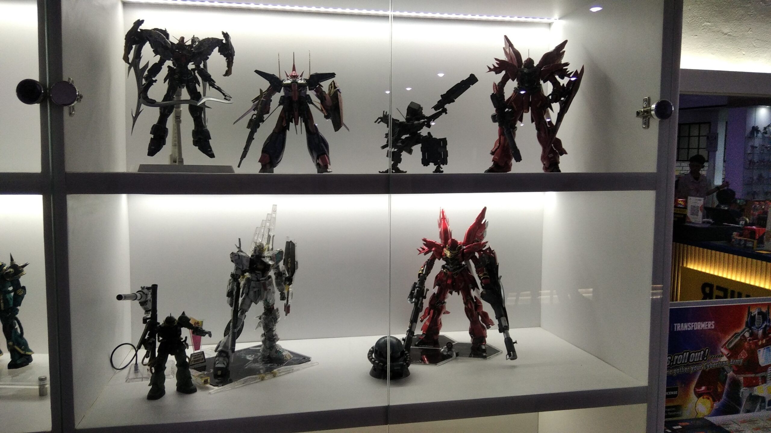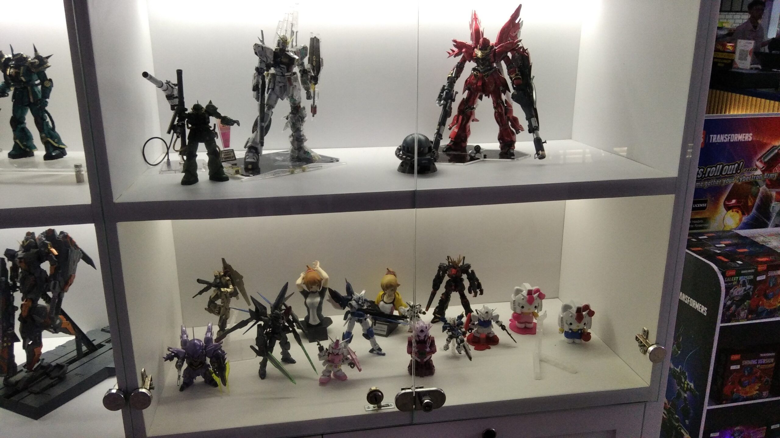 Begitu semakin ke dalam, terdapat banyak koleksi Gundam dari beragam seri dan beberapa figure anime yang dipajang di lemari kaca. Ada juga produk-produk dari seri Transformers, maupun pernak-pernik khas dari restoran yang memberikan identitas tersendiri. Bagi penggemar Gundam maupun anime, restoran ini memberikan keunikan yang hanya ada di tempat tersebut.