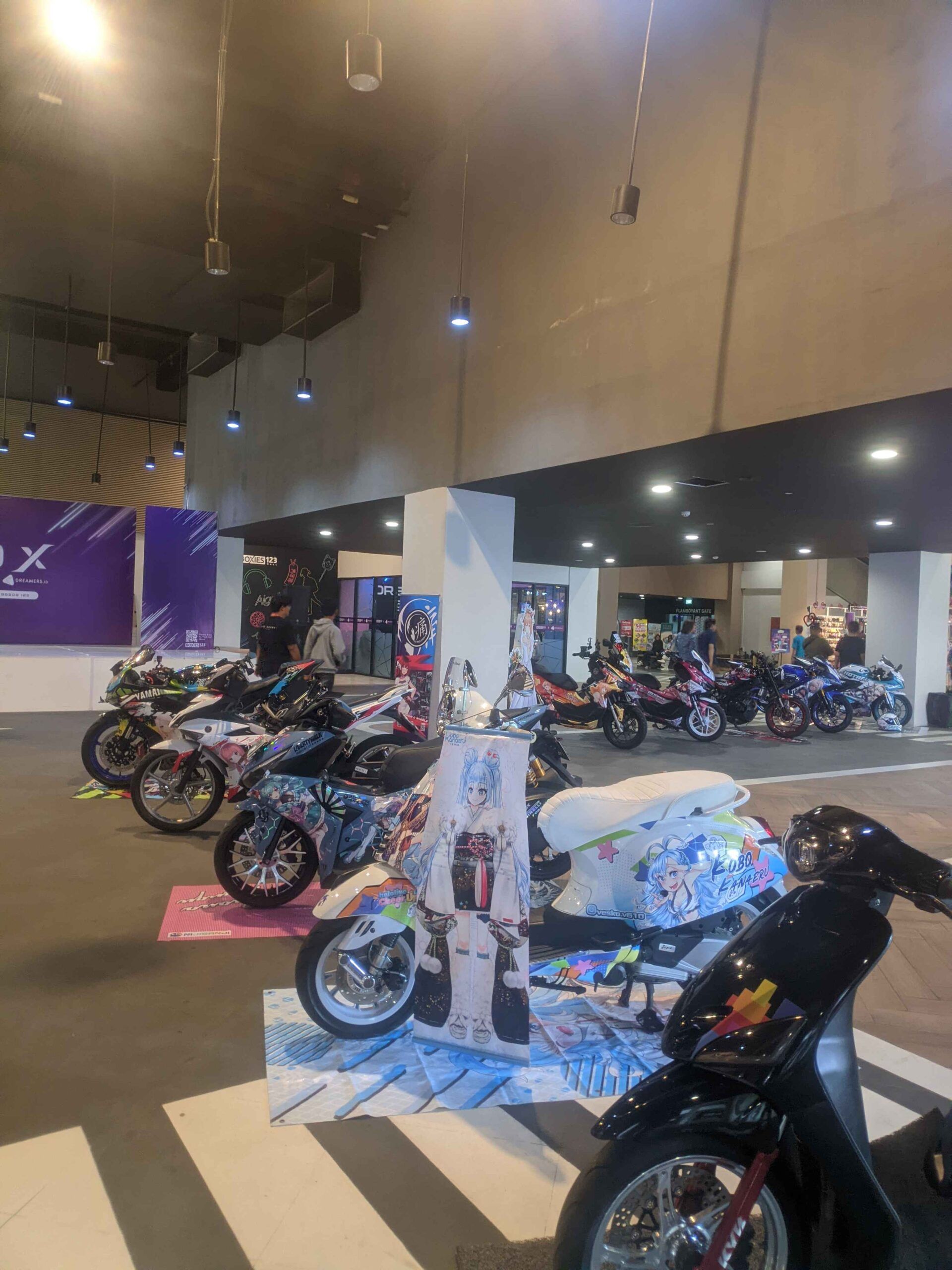 Di area event, terdapat berbagai booth komunitas yang meramaikan acaranya. Salah satunya adalah booth para Cosplayer dan grup idol lokal (chika idol) yang menjual berbagai merchandise seperti photocard, poster, dan cheki (sesi foto menggunakan kamera Polaroid). Ada juga booth itasha yang menarik perhatian dengan deretan mobil dan motor yang dihias karakter anime, game bahkan vtuber ataupun vsinger favorit mereka, menjadikan area ini terasa seperti galeri otomotif bertema anime.