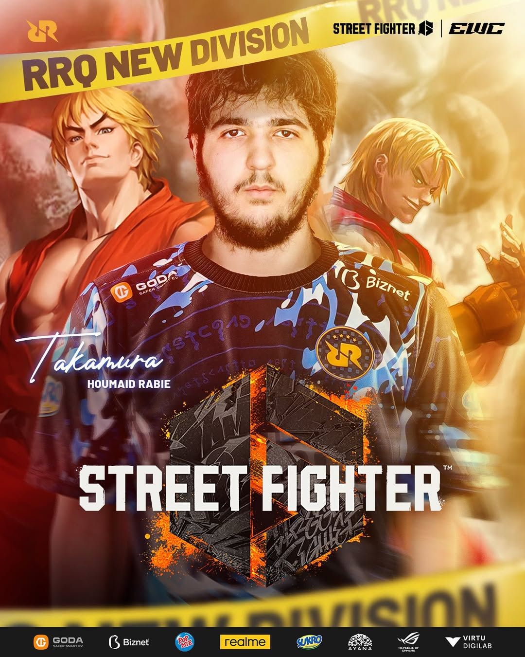 Sedangkan untuk RRQ, mereka mendatangkan atlet asal Belgia yaitu Takamura. Pria yang bernama asli, Rabie Houmaid ini merupakan pemain dengan segudang prestasi yang cukup bagus di skena esports Street Fighter seperti CPT World Warrior, Capcom Cup hingga Red Bull Kumite. Sejak game Street Fighter 6 dirilis, Takamura selalu menggunakan Ken di setiap kompetisi dan lewat combo serta gerakan bermainnya yang cukup serius, beliau selalu mendapatkan hasil positif di setiap turnamen di tingkat nasional hingga internasional.