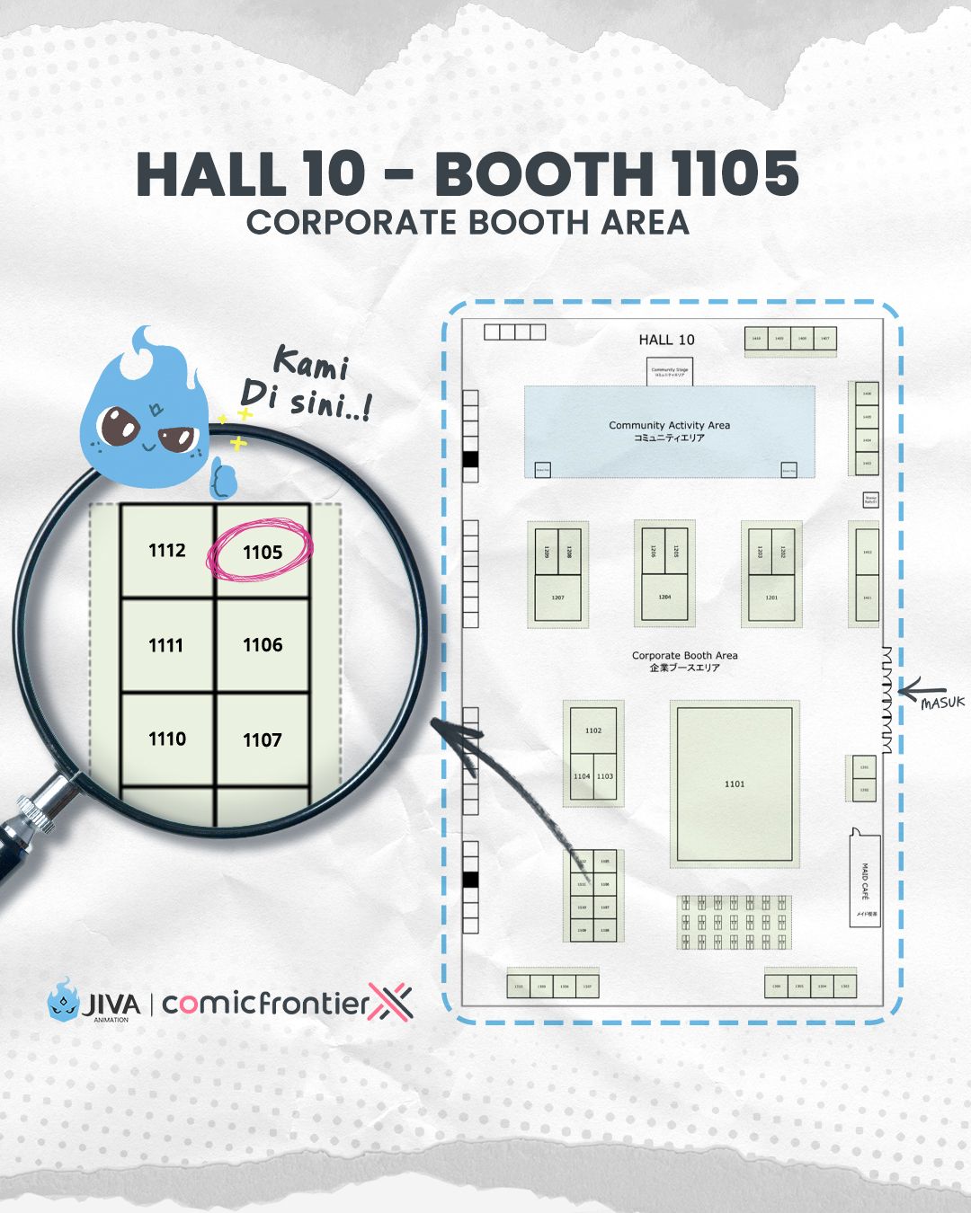 Studio animasi Jiva Animation akan turut meramaikan event pasar kreator Comic Frontier (Comifuro) XX pada 24-25 Mei 2025 di ICE BSD, Tangerang Selatan. Lewat booth korporat (nomor 1105), studio animasi asal Malang ini akan membagikan pengalamannya terlibat dalam berbagai produksi anime Jepang!