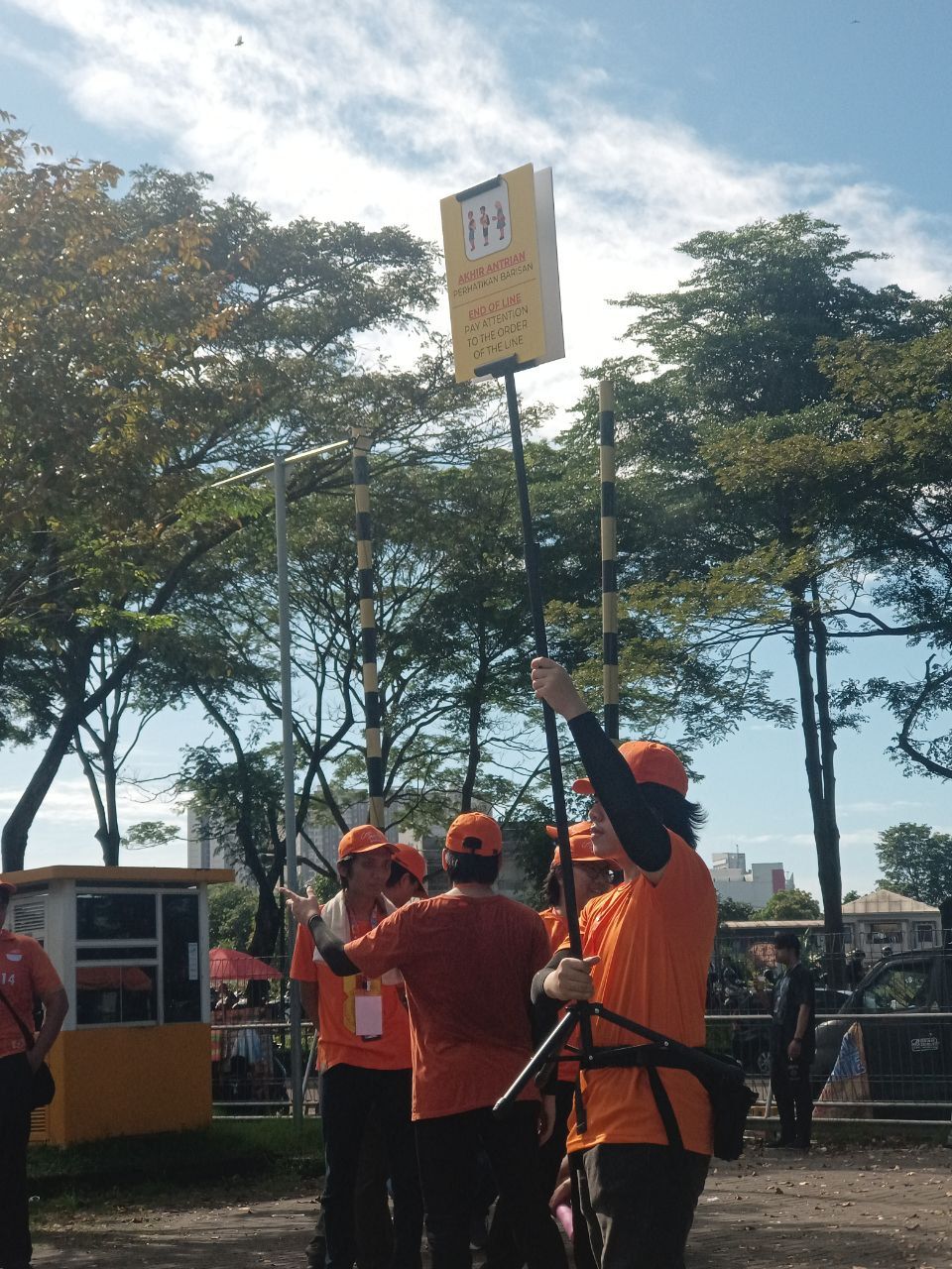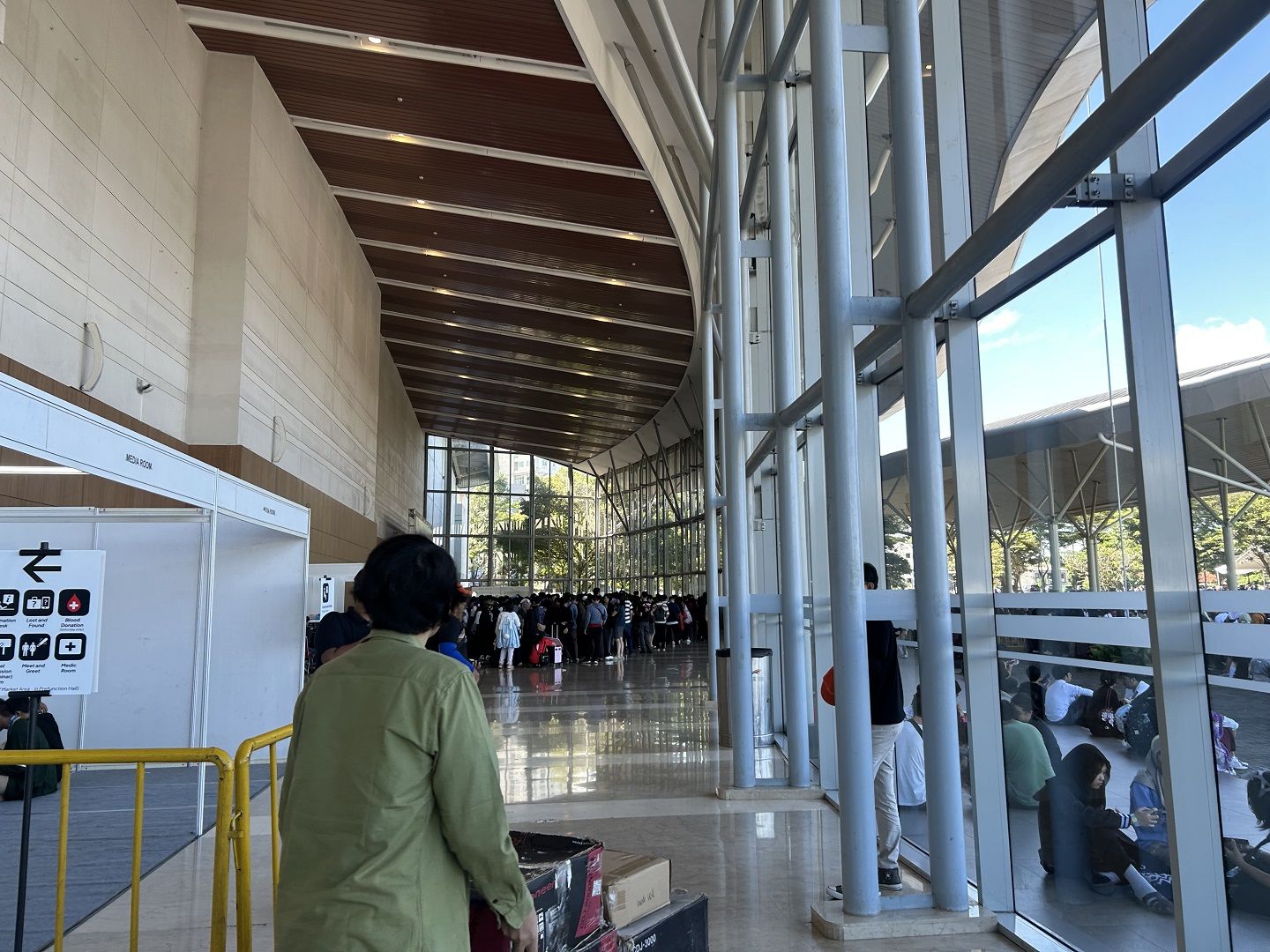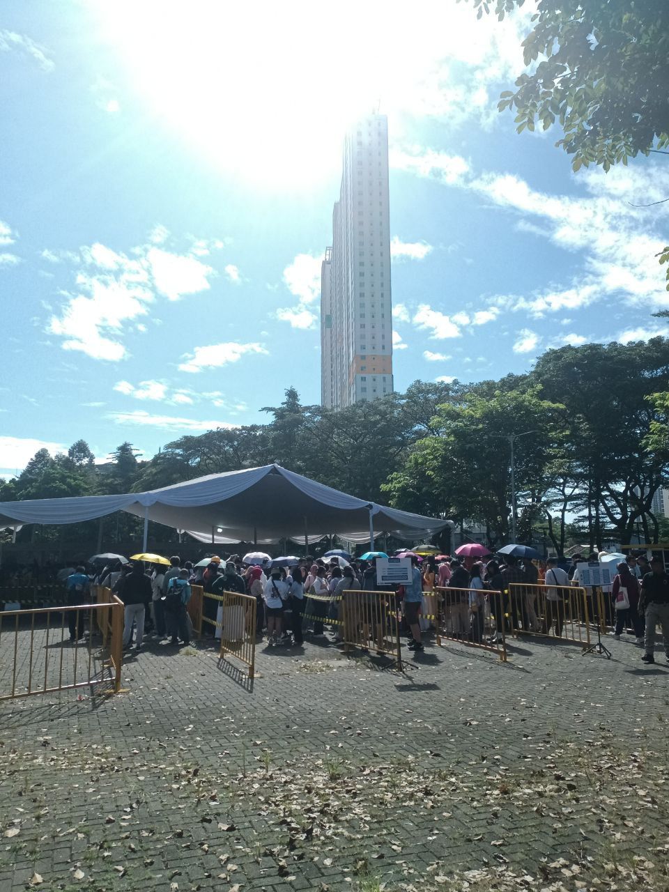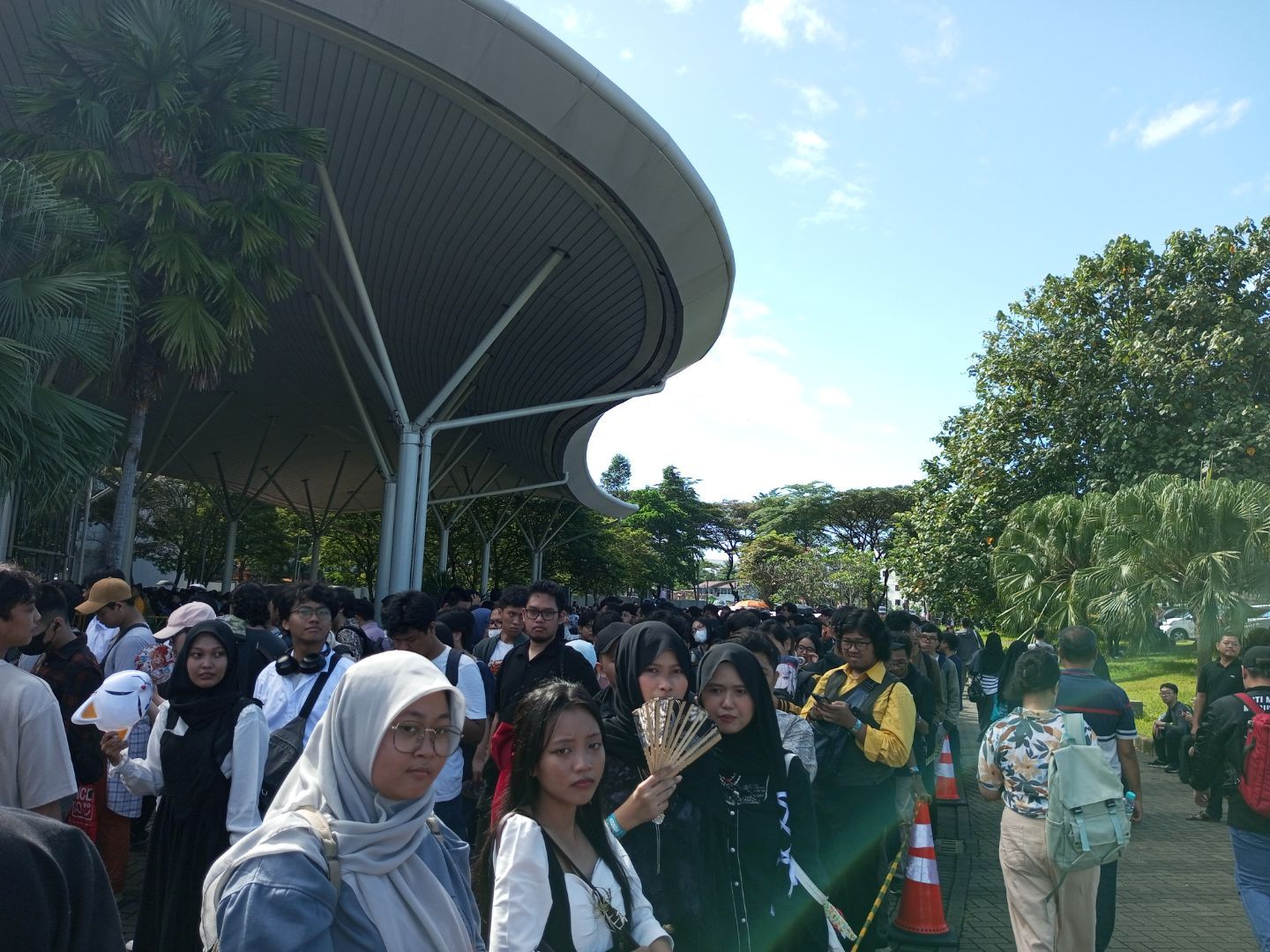 Para pengunjung yang telah menukar tiket kemudian mengantri di depan area Hall 10 ICE BSD. Berbeda dengan sebelumnya, area pre-function alias selasar di depan Hall 10 kini juga dipakai sebagai area tunggu antrian masuk Comifuro XX. Sehingga para pengunjung yang sudah mengantri sejak subuh kini bisa menunggu open gate tanpa perlu ber-panas-panasan di luar ICE BSD.
