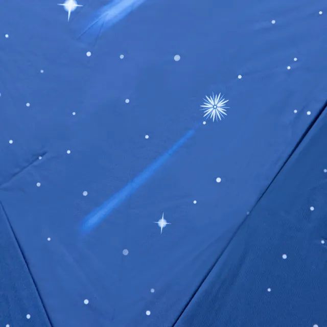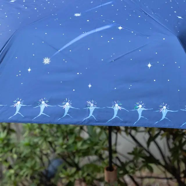 Payung Studio Ghibli ini menampilkan desain yang terinspirasi dari film-film klasik favorit. Pertama, ada desain “Hoshi no Ko” dari Howl’s Moving Castle, lengkap dengan motif bintang jatuh yang mengingatkan pada kekuatan Madame Suliman. Membuka payung ini seolah memanggil bintang ke langit kelabu kalian.