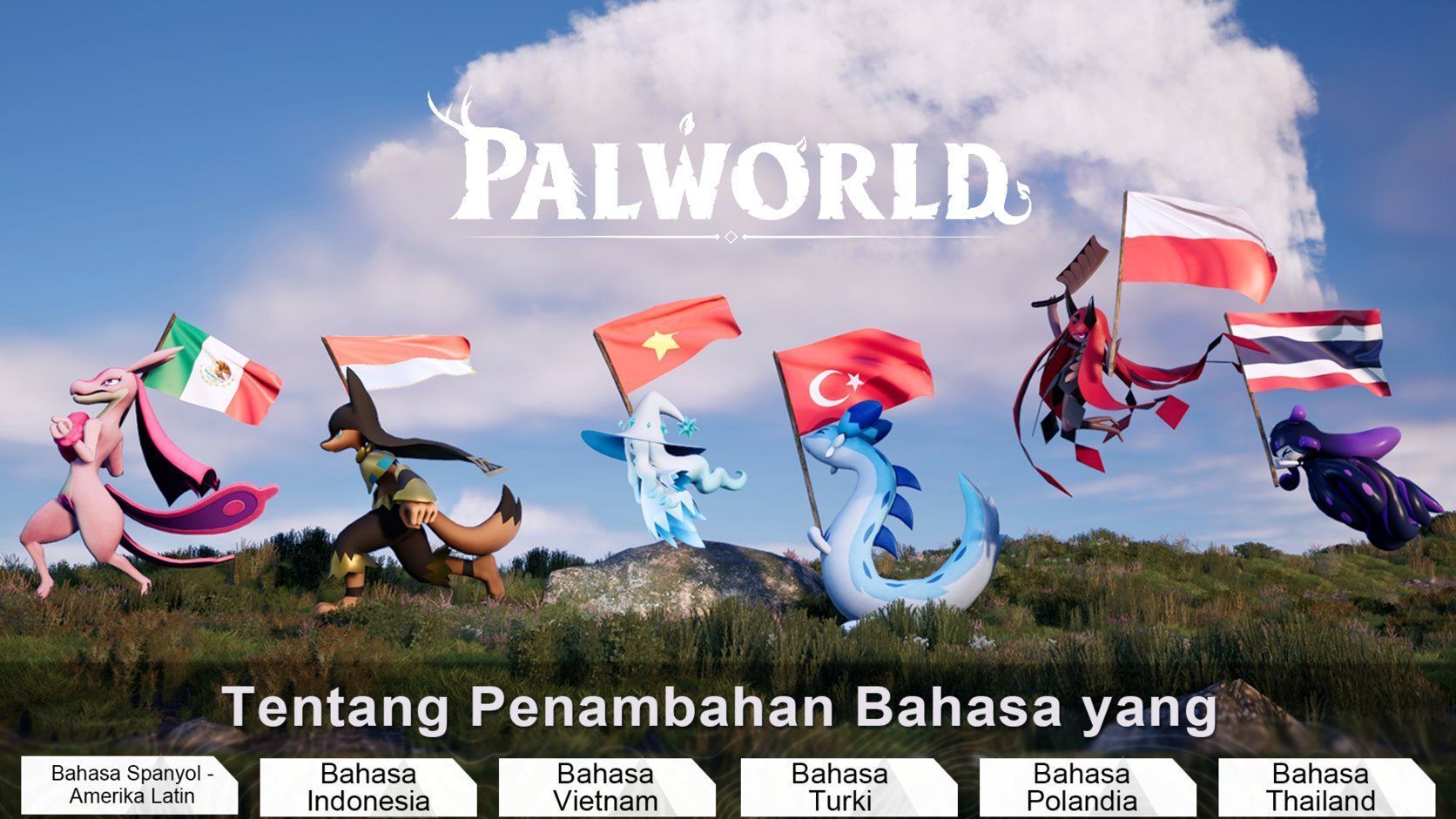 Salah satu sorotan utama pembaruan ini adalah kehadiran enam bahasa baru, yakni bahasa Spanyol (Amerika Latin), Indonesia, Vietnam, Turki, Polandia, dan Thailand. Dengan bahasa baru tersebut, Palworld diharapkan bisa menjangkau lebih banyak pemain di seluruh dunia, sekaligus membuat interaksi dalam game lebih nyaman dan akrab.