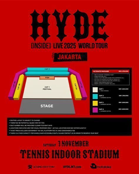 Yang membuat konser ini begitu spesial? Jakarta adalah satu-satunya kota di Asia yang dipilih HYDE untuk tur dunia 2025 ini. Tidak ada kota lain di kawasan yang akan disambangi,hanya Indonesia. Artinya, ribuan fans dari negara-negara tetangga akan berbondong-bondong datang demi menyaksikan aksi panggung sang legenda secara langsung.