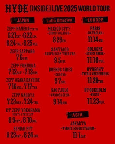 Acara : “HYDE [INSIDE] LIVE 2025 WORLD TOUR”
