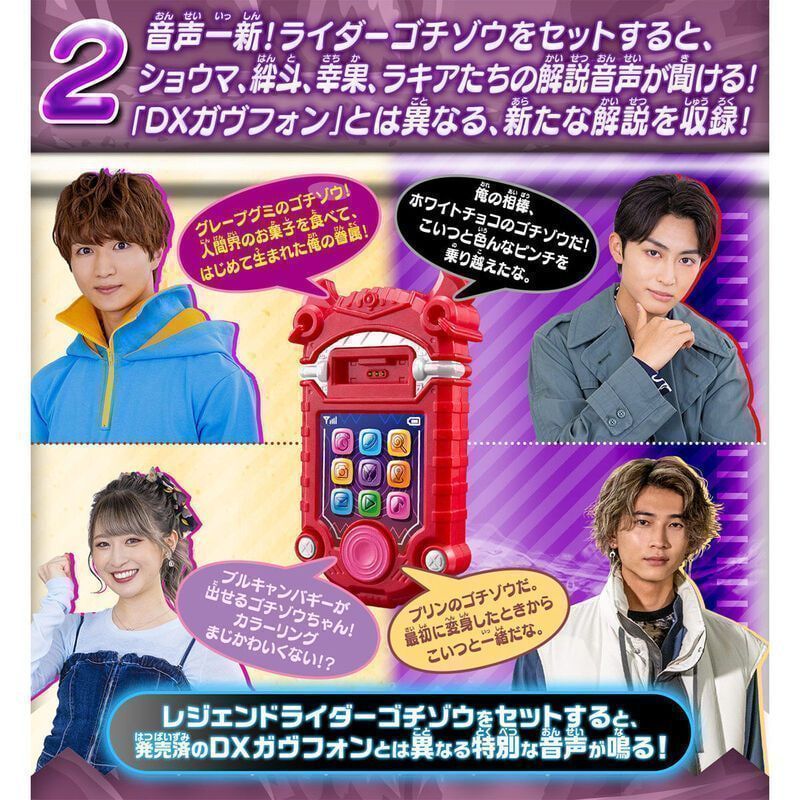 Salah satu fitur menarik dari DX Gavvphone edisi ini adalah peningkatan pada Gochizo commentary. Sekarang, selain suara Shoma, Sachika, dan Hanto, suara Rakia juga hadir melengkapi pengalaman mainan ini. Saat Legend Rider Gochizo dipasang, efek suara untuk jurus spesial juga mendapatkan pembaruan, membuat DX Gavvphone ini makin seru dimainkan para penggemar Kamen Rider Gavv.