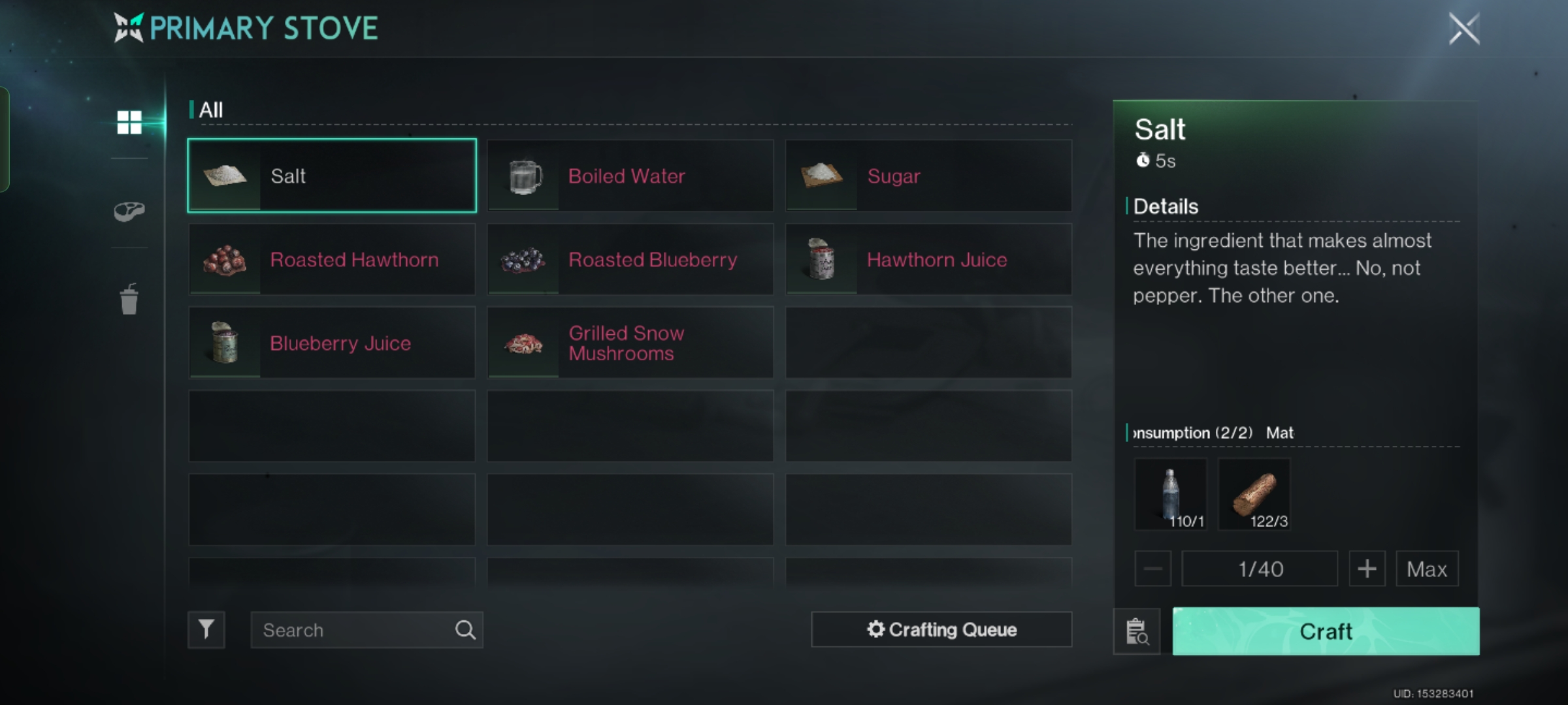 Pemain bisa membuat segala sesuatu lewat fitur crafting. Caranya bisa melalui beberapa peralatan atau fasilitas yang pemain buat di mode building. Pemain bisa membuat logam, menciptakan pintu untuk rumah hingga memasak makanan dan minuman untuk bertahan hidup.