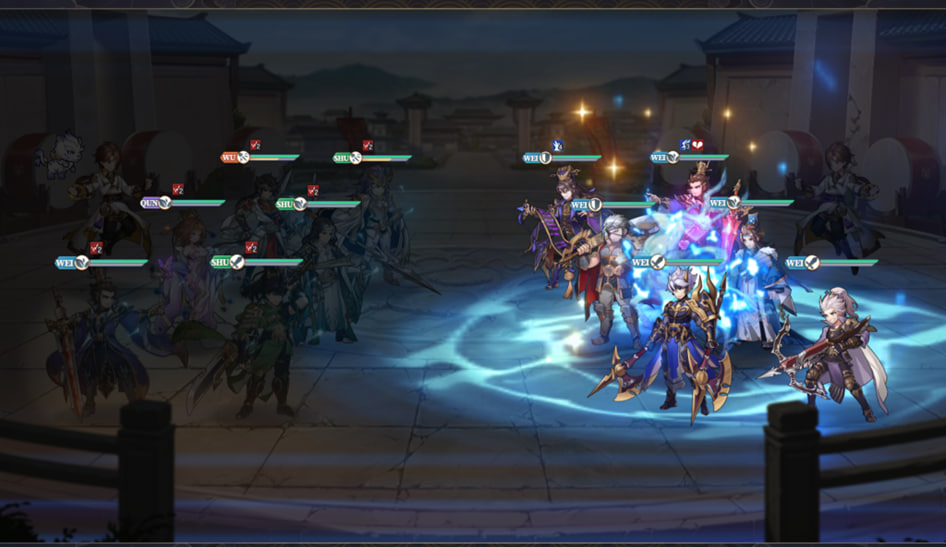 Susun formasi dari 6 hero dan 1 karakter utama, bebas dikombinasikan sesuai gaya bermain. - Sistem Idle dan Auto Play