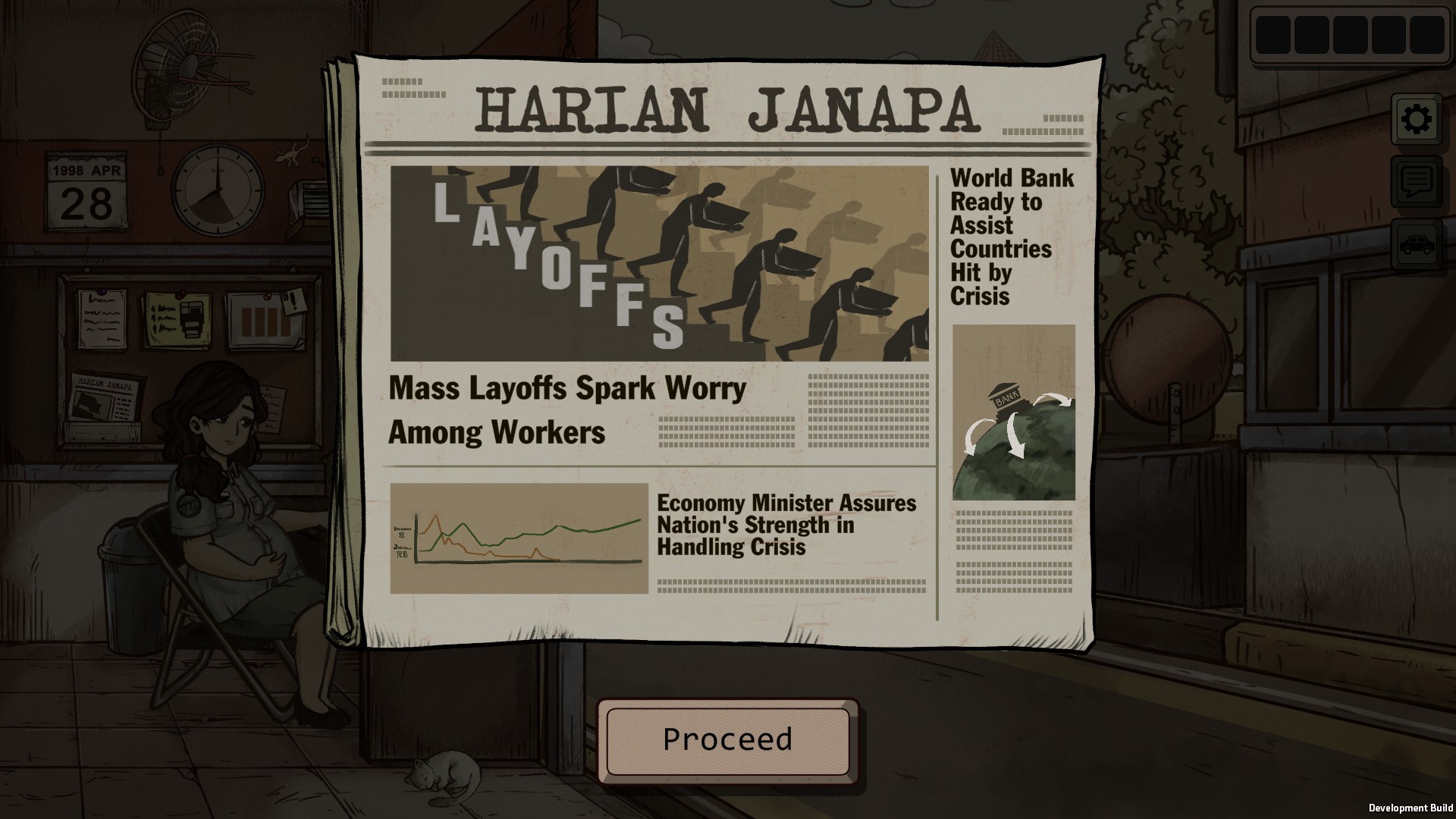 Antusiasme tinggi dari pemain Indonesia jadi alasan utama hadirnya dukungan bahasa lokal. Dalam periode demo di Steam, 1998: The Toll Keeper Story sudah dimainkan lebih dari 2500 orang, dengan mayoritas wishlist diisi oleh gamer Indonesia hingga menembus angka 10 ribu. Melihat hal itu, GameChanger menambahkan bahasa Indonesia pada seluruh aspek gim, mulai dari menu, dialog, hingga catatan harian karakter utama, Dewi.
