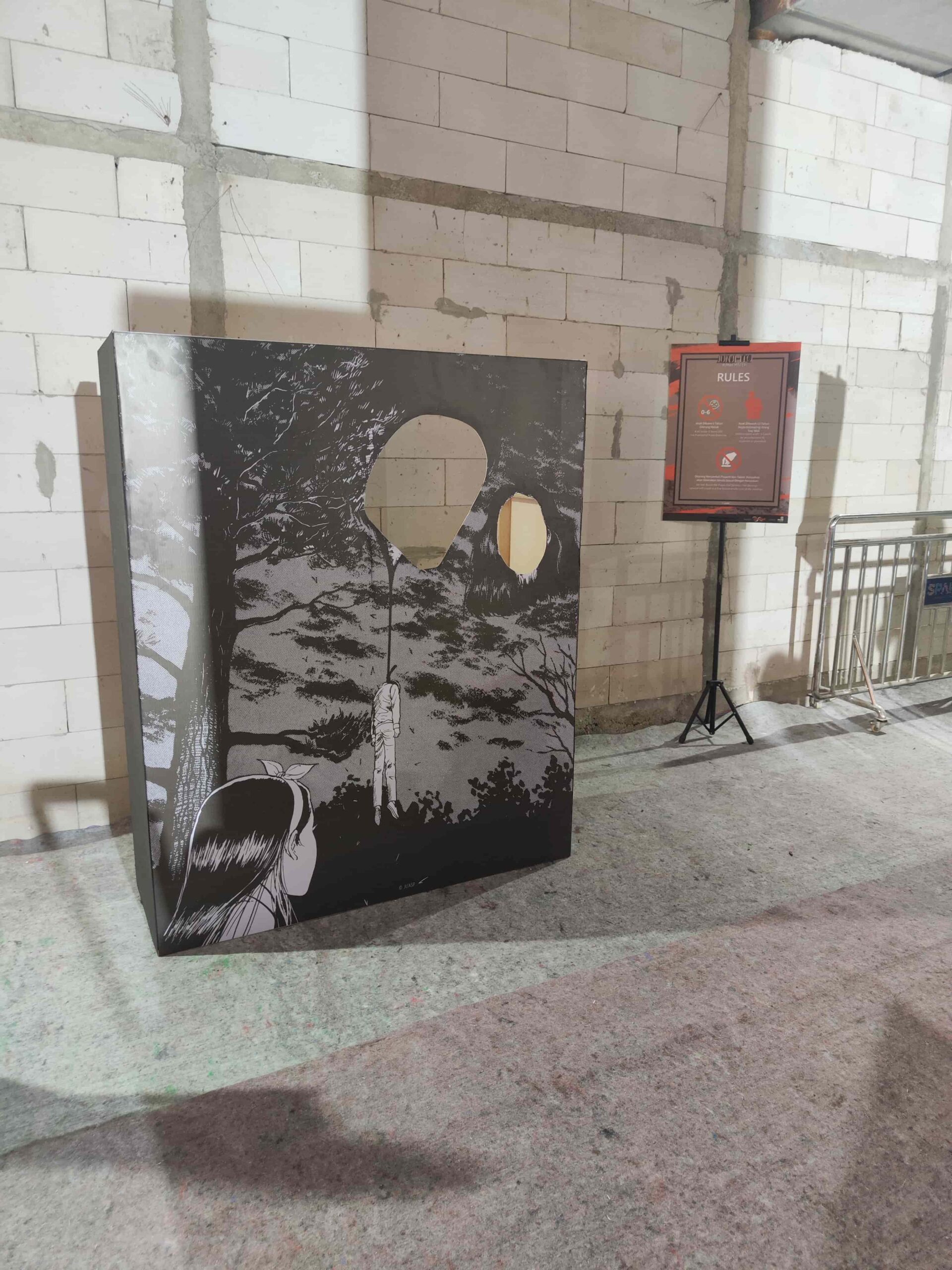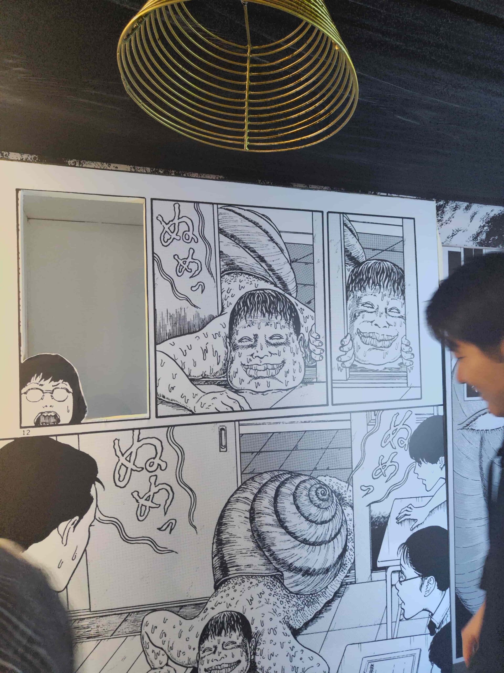 Selain wahana utama, terdapat area “Exhibition” yang menampilkan arsip visual asli Junji Ito. Pengunjung dapat melihat lebih dekat detail goresan sang maestro dari seri terkenal seperti Tomie, Soichi, Uzumaki, dan banyak lagi. Area pameran ini dirancang seperti labirin mimpi buruk, diperkuat dengan efek suara, pencahayaan dramatis, dan elemen visual interaktif untuk memaksimalkan pengalaman imersif. Ini adalah kesempatan langka untuk mengapresiasi seni Junji Ito secara langsung.