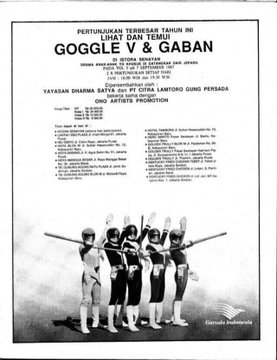 Di Indonesia sendiri, Super Sentai pertama kali diperkenalkan lewat Google V (Dai Sentai Google V) dengan kehadirannya di media kaset video Betamax bareng Gaban (Uchuu Keiiji Gavan) sekitar tahun 1987 yang diimpor oleh PT Indovi Indah Mas. Kepopuleran Google V dan Gavan ini berhasil membuat acara aksi panggungnya (live show) sendiri oleh Yayasan Dharma Satya yang dihadiri oleh masing-masing pemeran Jepangnya langsung di Istora Senayan pada tahun 1987.