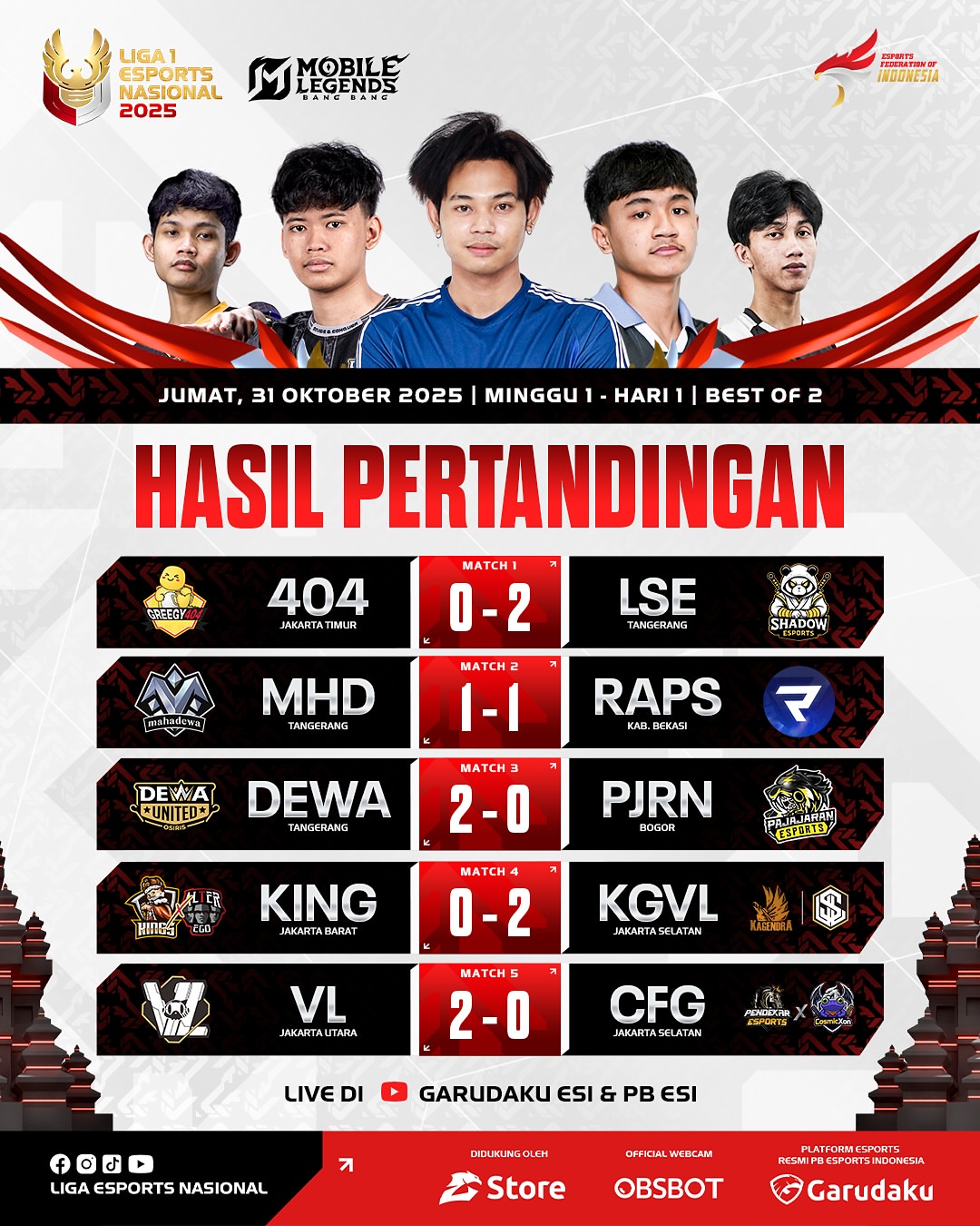 Liga 1 Esports Nasional 2025 kali ini semakin menarik lewat aksi-aksi ke-11 tim yang menunjukkan skill ke lawan-lawannya selama 2 minggu. Mari saksikan, tim siapa yang akan lolos ke panggung utama Liga Esports Nasional 2025 dan tim mana yang akan terdegradasi di Liga 2 musim depan?