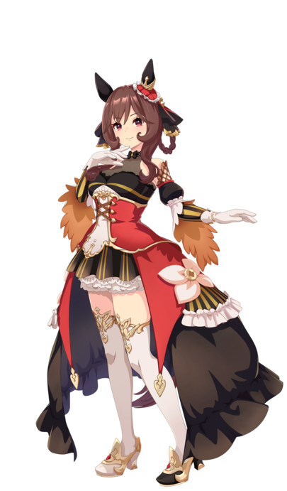 Rekam jejak Gentildonna di dunia nyata adalah definisi sejati dari dominasi. Terlahir dari kuda pejantan legendaris Deep Impact dan Donna Blini, sang kuda debutnya pada November 2011. Gentildonna menunjukkan bakat luar biasa dengan menyapu bersih gelar Triple Tiara (Oka Sho, Japanese Oaks, dan Shuka Sho) saat berusia tiga tahun. Sang kuda juga membuat salah satu momen terbaiknya lewat duel legendaris melawan Orfevre di Japan Cup 2012, dan menjadi kuda betina usia tiga tahun pertama yang memenangkan lomba tersebut. Tahun berikutnya Gentildonna kembali meraih juara Japan Cup 2013, mencatatkan sejarah sebagai juara Japan Cup dua kali berturut-turut. Selain di Jepang, sang kuda juga sempat dua kali berlomba di pacuan Dubai Sheema Classic, dengan finish di posisi kedua pada 2013 dan akhirnya meraih juara pada 2014.