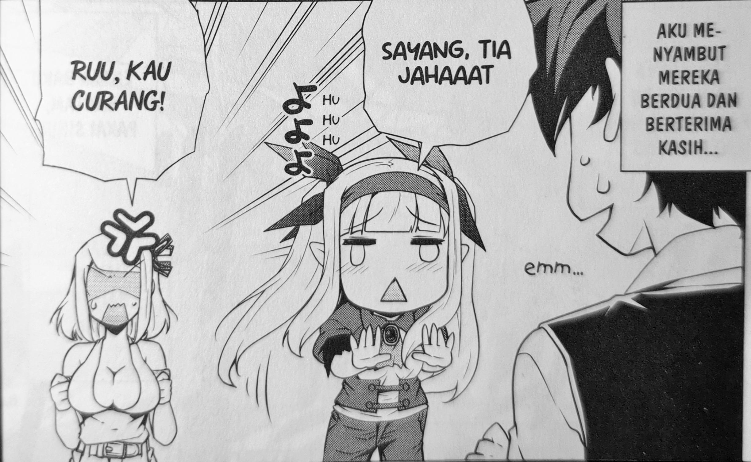 Namun bobot utama volume ini terfokus pada bagaimana pak kades harus merencanakan desa ketiganya sekaligus memastikan penduduknya merasa nyaman tinggal di desa tersebut. Pasalnya dirinya juga terkejut akan beberapa ras yang baru ia temui dan bagaimana caranya agar mereka merasa tercukupi. Jujur saja, semakin lama, cerita seri ini terasa lebih ke arah pembangunan daripada bagaimana hidup sederhana sebagai petani. Tapi ya kita sendiri sudah bisa melihat transisi cerita sederhana menjadi pembangunan sejak volume kedua. Walau saya suka, tapi membaca banyak teks terkadang membuat saya sedikit kesulitan untuk fokus apalagi dengan gaya baca saya yang selalu mengutamakan speed reading. Namun beruntunglah topik pembangunannya pun tidak hanya sekedar membangun tapi ada dasar mengapa harus membangun itu dengan bumbu fantasi.