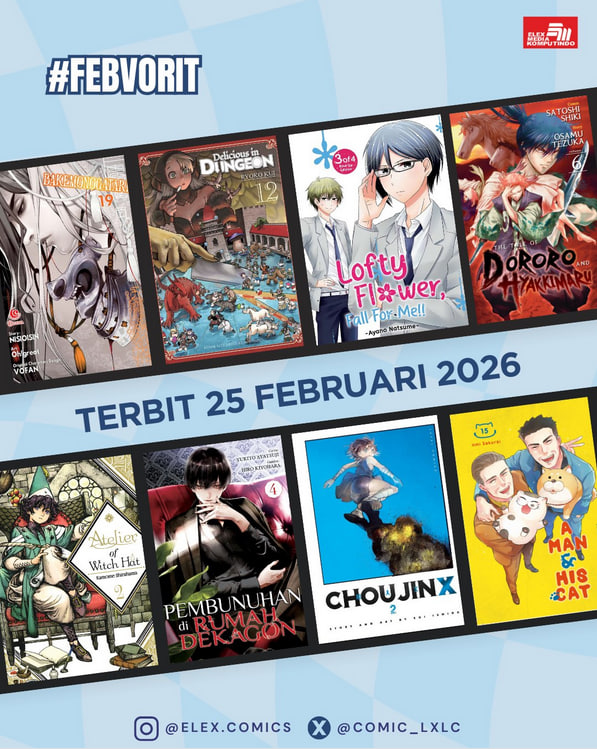 Melalui akun media sosialnya, penerbit Elex Media Komputindo memberikan bocoran mengenai sejumlah komik yang rencananya akan diterbitkan pada minggu keempat atau terakhir bulan Februari 2026. Beberapa judul ada yang merupakan seri atau volume baru ataupun seri yang diterbitkan ulang. Jika tidak ada halangan, maka komik-komik ini akan terbit pada tanggal 25 Februari 2026. Inilah bocoran komik Februari 2026 (minggu keempat/terakhir):
