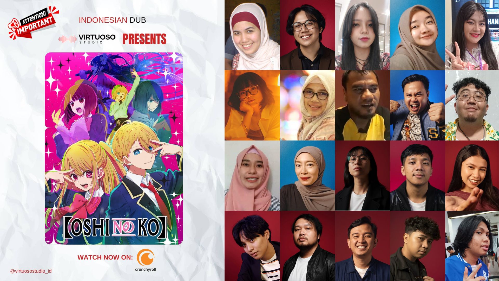 Dubbing Indonesia untuk anime Oshi no Ko ini digarap oleh Virtuoso Studio Indonesia. Berikut adalah jajaran seiyu-nya:
