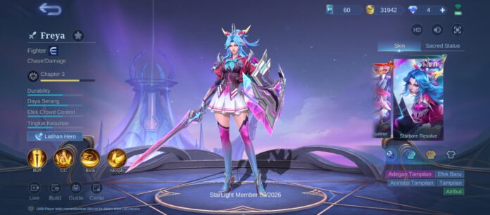 Sejak pertama kali bocorannya beredar pada awal tahun 2026, skin Starlight Maret 2026 bertajuk Freya – Starborne Resolve ini langsung memicu perbincangan hangat. Freya memang sudah punya banyak koleksi skin keren, tapi di seri kali ini menawarkan sesuatu hal yang berbeda. Di seri Starlight kali ini memadukan antara kemegahan kosmik dan ketegasan seorang prajurit Valkyrie.