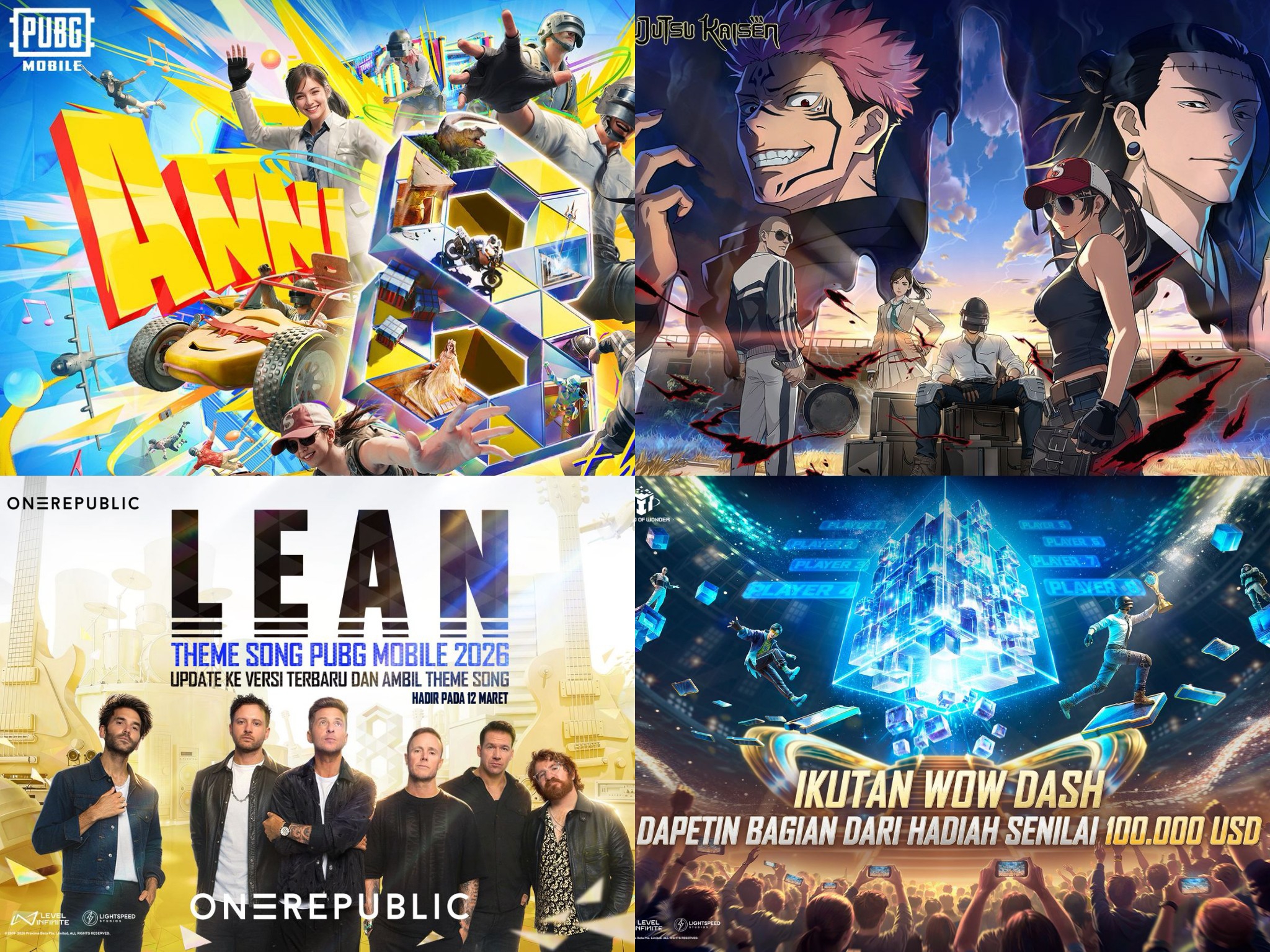 Untuk merayakan ulang tahun ke-8, PUBG Mobile menghadirkan kolaborasi musik dengan band ternama dunia OneRepublic! Mereka menyumbangkan lagu ikonik ke dalam game-nya yang berjudul LEAN! Pemain yang memperbarui game-nya ke versi 4.3 akan mendapatkan akses awal eksklusif ke single terbaru dari band tersebut.
