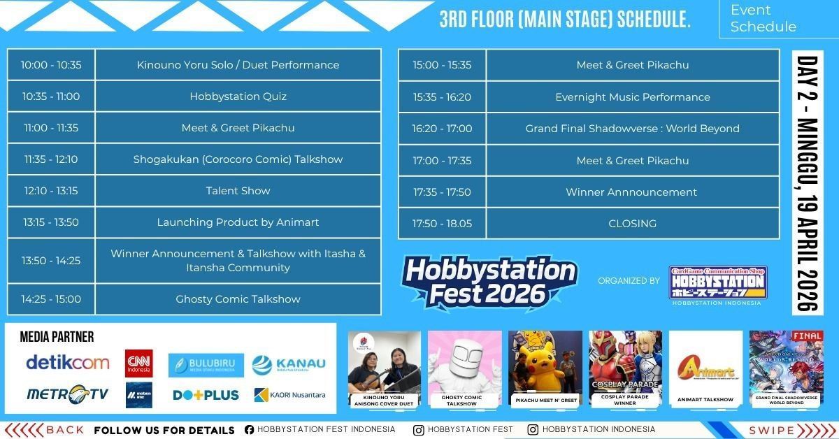 Untuk memantau informasi lebih detail mengenai tata cara lomba maupun jadwal acara, pengunjung bisa merujuk ke akun media sosial resmi mereka di Instagram @hobbystationfest maupun @hobbystation.indonesia, serta laman Facebook Hobbystation Fest Indonesia.