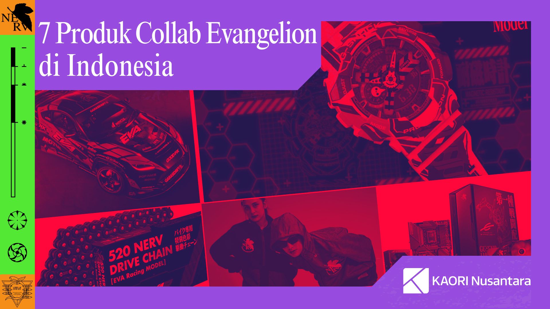 #Kaoreaders, siapa yang tidak mengenal Evangelion? Seri anime besutan sutradara Hideaki Anno yang pertama kali tayang pada 1995 ini menjadi salah satu seri mecha yang masih digandrungi oleh para penikmat jejepangan hingga saat ini. Berkat kepopulerannya, banyak item pernik yang berkolaborasi dengan seri tersebut. Penampakan Shinji, Asuka, Rei, dan karakter Evangelion lainnya beserta corak warna ungu-hijau EVA-01 dan mecha lainnya menghiasi berbagai produk yang berkolaborasi dengan serial ini.