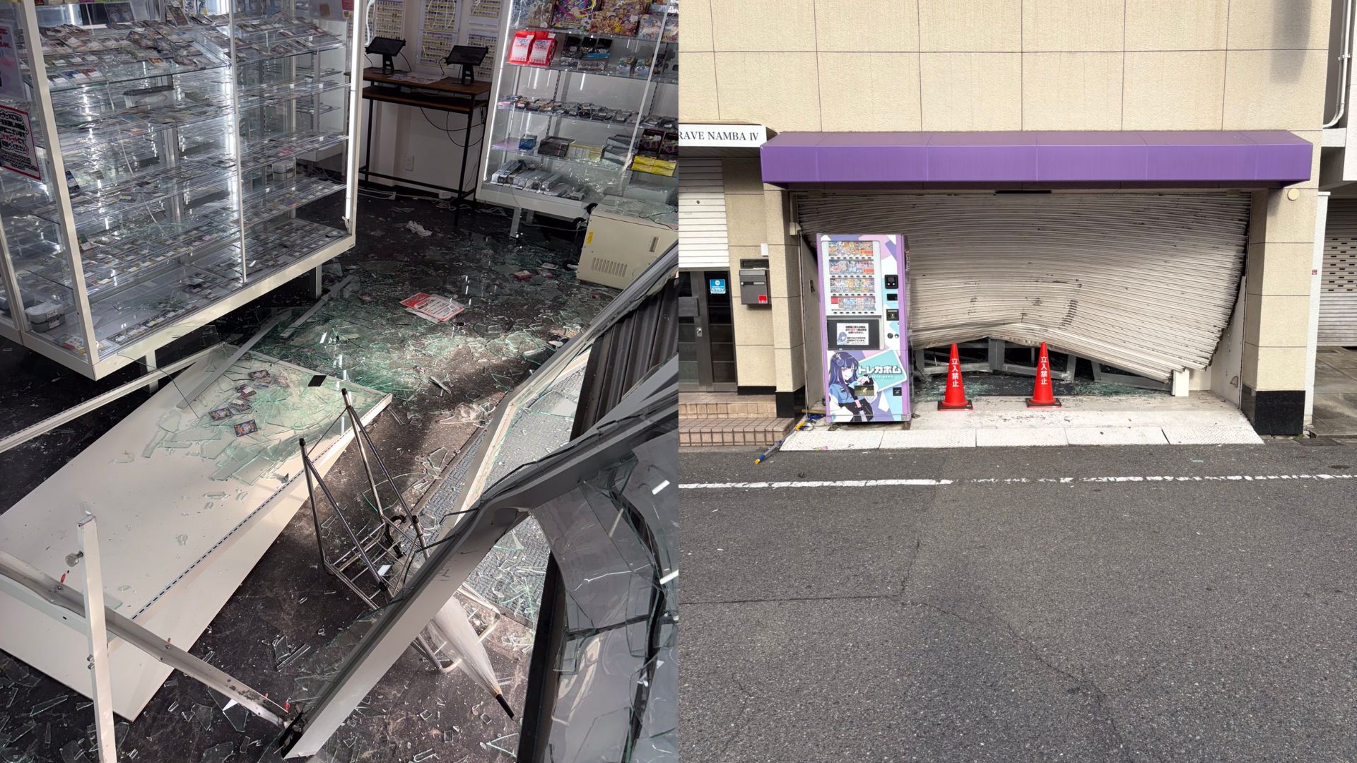 本日未明、当店にて強盗事件が発生しました。シャッターを破壊し侵入、店内も荒らされている状況です。