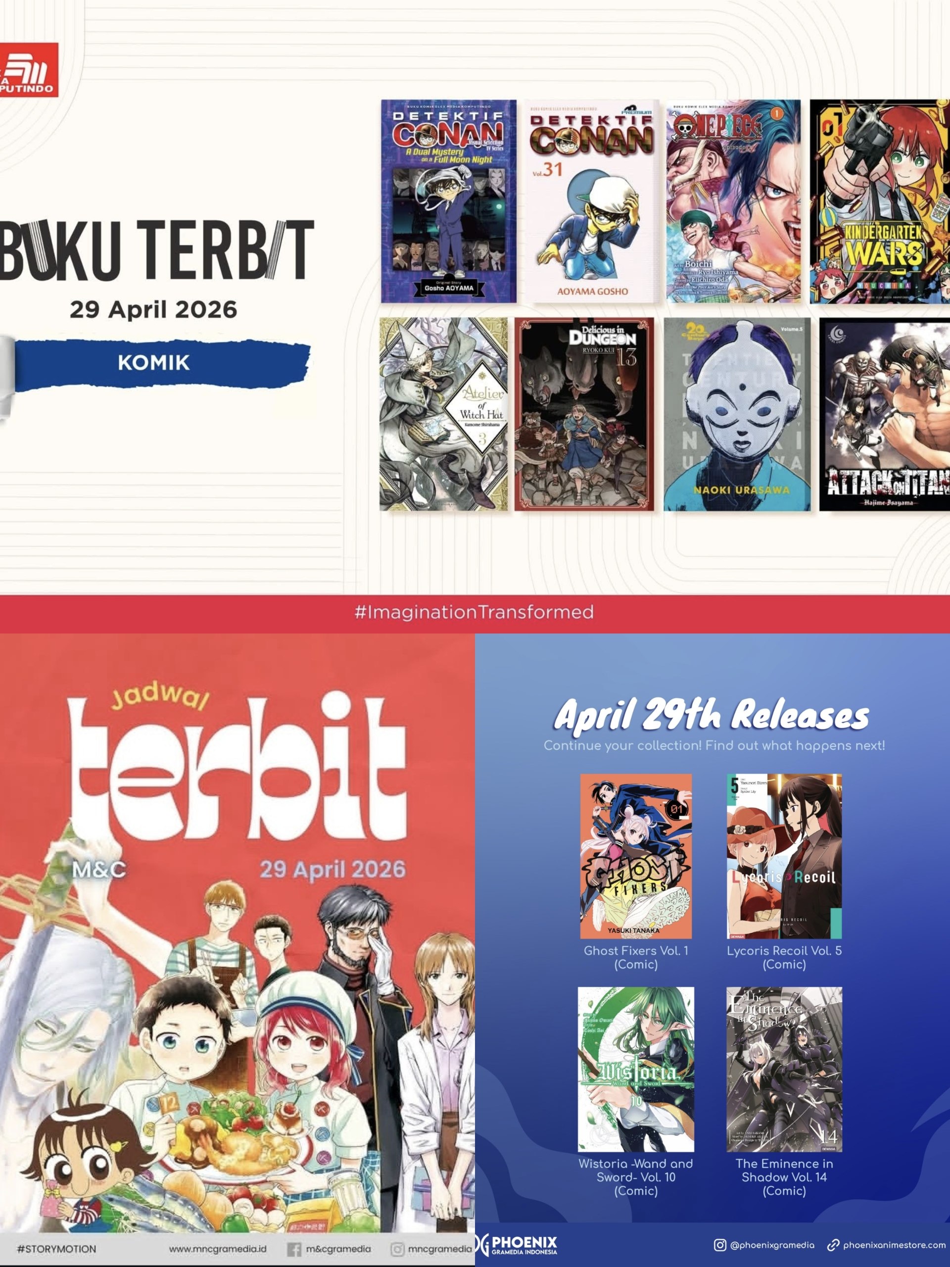 Berikut adalah daftar komik yang akan terbit pada tanggal 29 April 2026. Judul yang akan terbit bisa saja berbeda dari yang tercantum di jadwal ini sesuai kebijakan masing-masing penerbit: