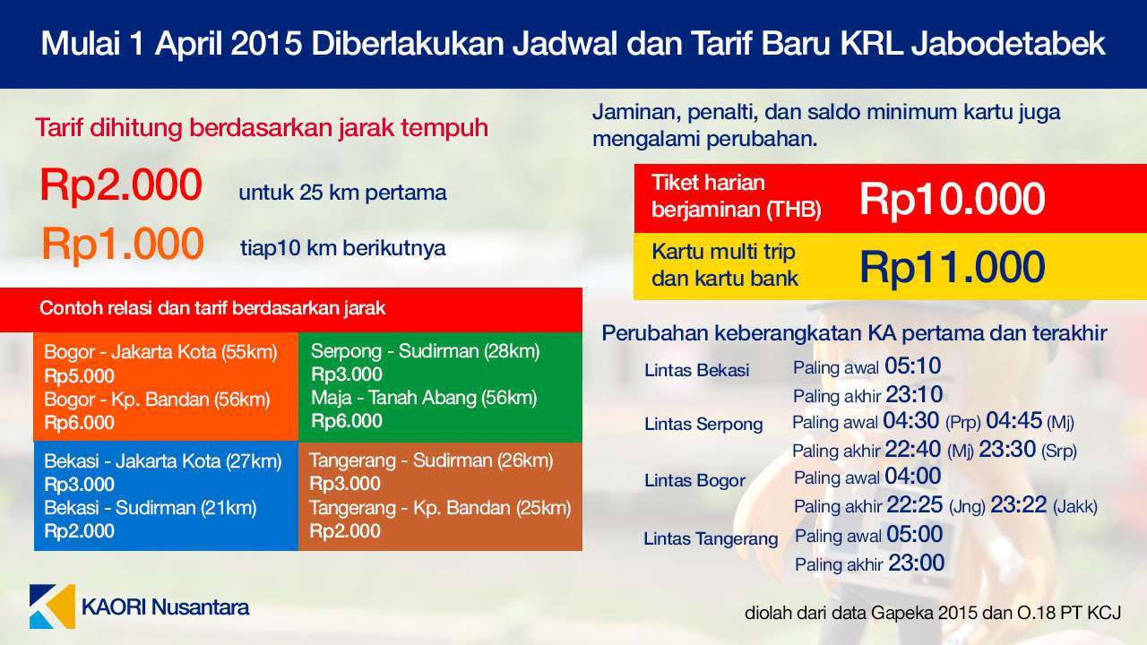 - Bogor – Tanah Abang, semula tarif Rp. 4500,- menjadi Rp. 5000,-