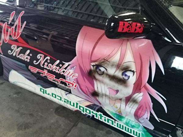 Mobil yang menjadi korban adalah Nissan 180SX yang didekorasi dengan stiker dari seri Love Live! School Idol Project dan pada akhirnya, ia terpaksa melepas seluruh stiker itasha yang melekat di mobilnya.