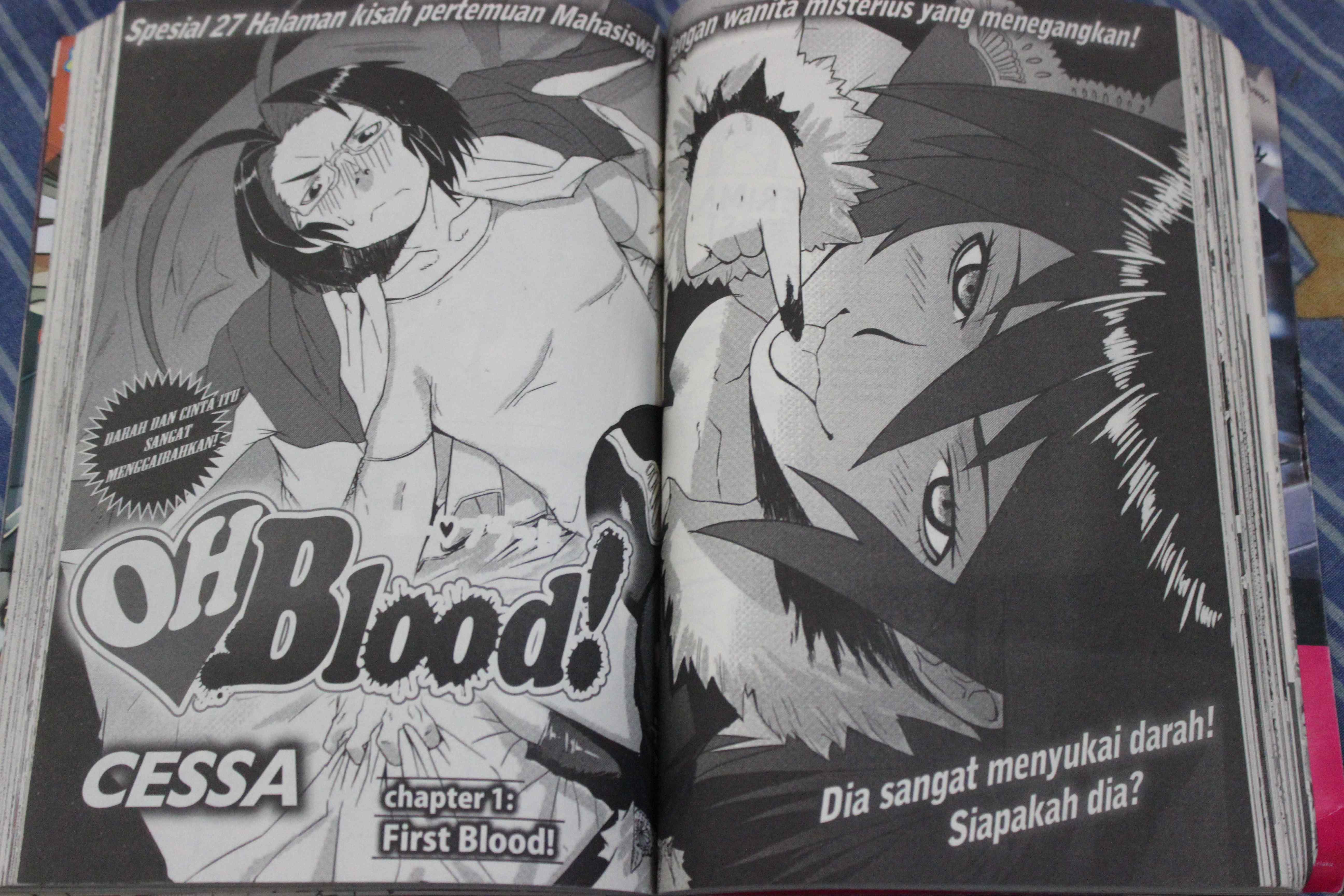 OH Blood! merupakan salah satu komik dari majalah Shonen Fight yang mengisahkan mengenai kehidupan seorang mahasiwa penghuni kos bernama Kuncoro Bangun yang akrab disapa Coro. Suatu hari saat hendak menjalani kehidupan sebagai mahasiswa penghuni kos, yakni memasak mie instan, Coro dihampiri oleh sesosok perempuan misterius yang mengaku sebagai vampir. Vampir bernama Aidestanti Maskito ini bermaksud mengambil sampel darah Coro sebagai bahan untuk membuat obat kuat. Akibat pertemuan dengan vampir yang aneh ini, kehidupan Coro sebagai mahasiwa pun berubah.