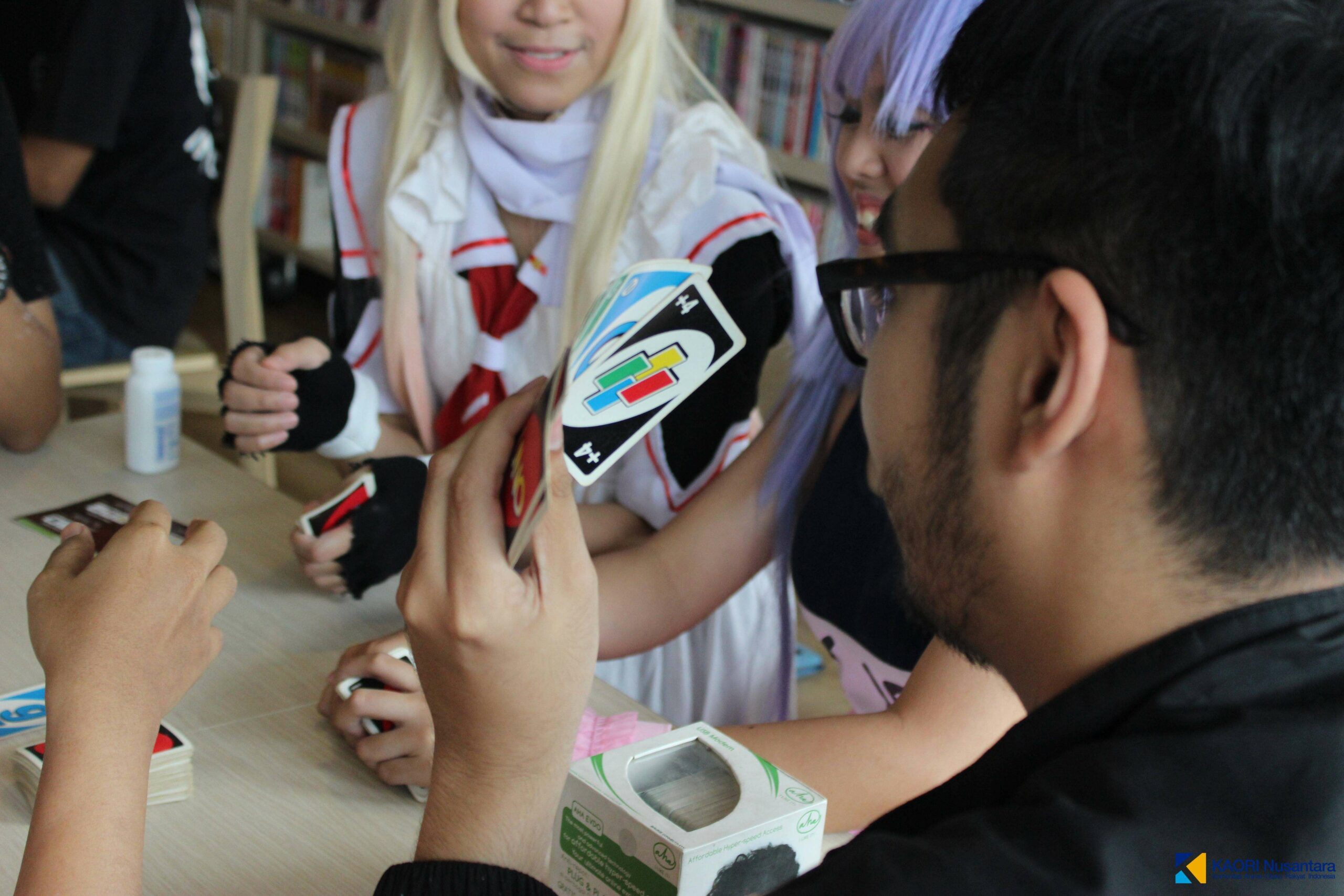 Terlihat banyak permainan yang dilakukan oleh para kanmusu dan para teitoku yang hadir. Mulai dari bermain kartu UNO, hingga menyusun Jengga terlihat di berbagai meja Mamiya Cafe ini.