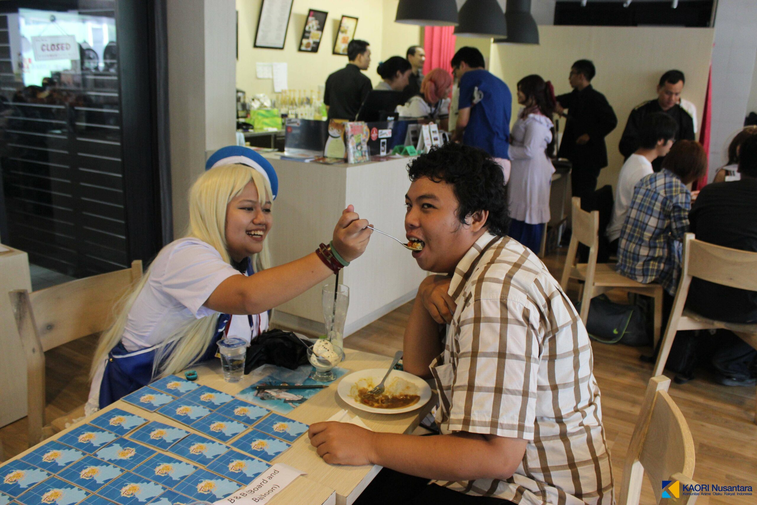 Setelah melakukan permainan, satu per satu makanan yang dipesan pun mulai berdatangan. Para kanmusu pun mulai melayani para pengunjung yang tengah menyantap makanan. Meski sesi bermain sudah berakhir, namun tetap saja banyak hal mengejutkan yang terjadi dikala para pengunjung tengah makan.