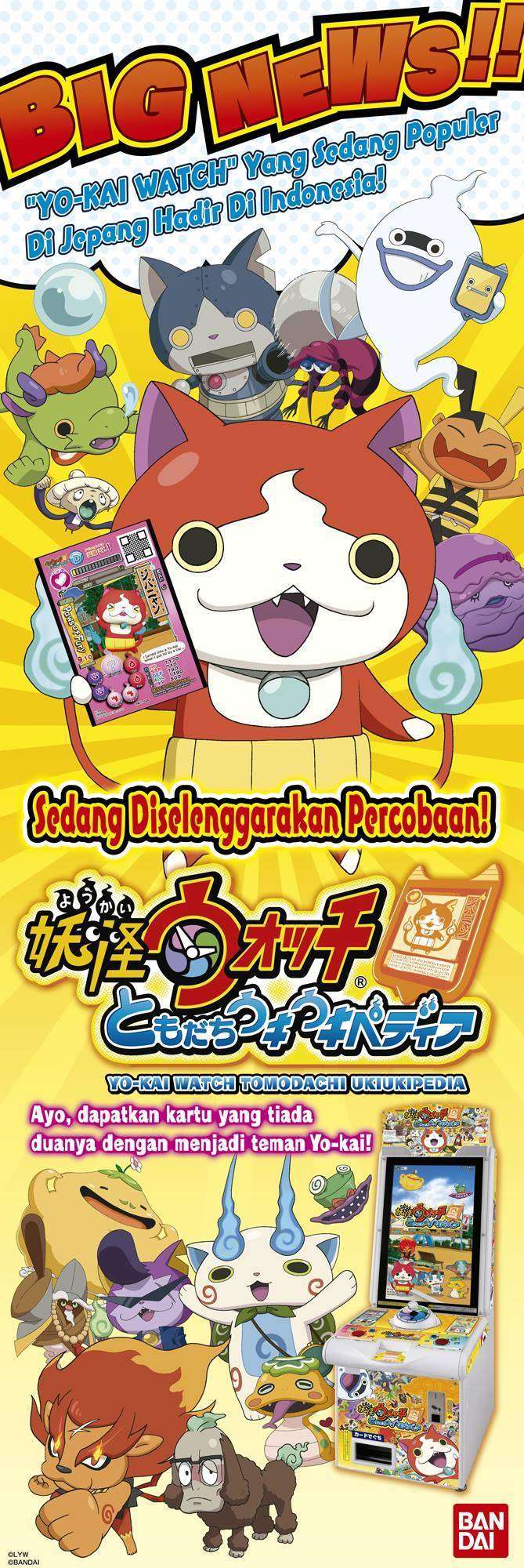 Setelah sebelumnya telah merilis game ding-dong Aikatsu dengan berkolaborasi dengan grup idola JKT48, kini pihak Bandai Namco Indonesia akan membawa game ding-dong terbaru yang berjudul Yo-Kai Watch: Tomodachi Ukiukipedia. Melalui fan page resminya, pihak Bandai Namco Indonesia mengumumkan akan menggelar sesi uji coba terlebih dahulu pada tanggal 4 Juli 2015. Sesi uji coba akan dilakukan di tiga lokasi, yaitu Kelapa Gading Mall TIMEZONE, Galaxy Mall TIMEZONE, dan Supermall Karawaci TIMEZONE.