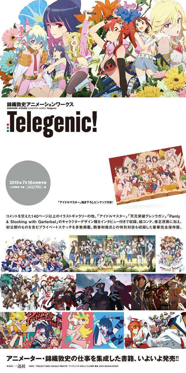 Atsushi Nishigori, seorang animator serta desainer karakter dari beberapa seri anime yakni Gurren Lagann, Panty and Stocking, serta The Idolm@ster akan segera merilis artbook yang berisi ilustrasi karyanya. Artbook tersebut akan berjudul Telegenic.