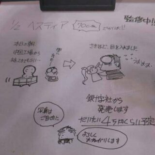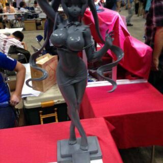 Dibuat oleh sebuah circle doujin asal Jepang @KEUMAYA, figur ini awalnya sempat diperlihatkan versi setengah jadinya pada bulan Mei lalu dengan tinggi 70 cm sebagaimana foto-foto di bawah ini: