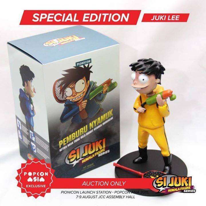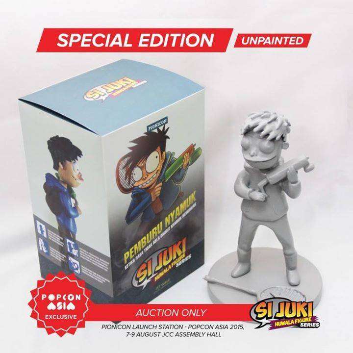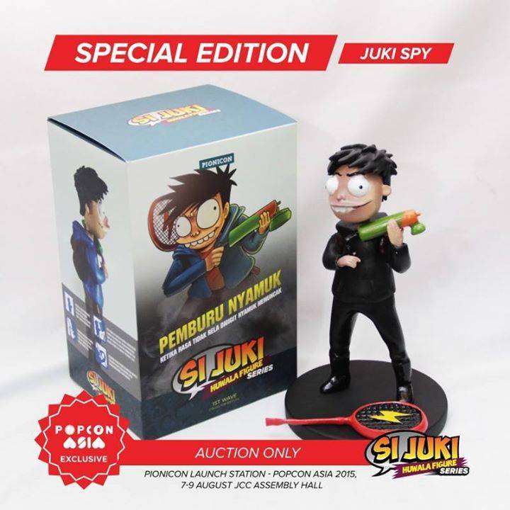 Sebagaimana telah diberitakan sebelumnya, Si Juki, karakter komik yang ngakunya anti mainstream (padahal sudah mainstream banget) akhirnya akan meluncurkan figur dari dirinya yang akan dirilis pada ajang Popcon Asia 2015. Figur yang diberi nama Si Juki Huwala Figure “Pemburu Nyamuk” ini memiliki tinggi sekitar 15 cm. Dibuat dengan bahan resin, sosok Juki yang hadir sok keren memegang semprotan nyamuk ini diijual dengan harga Rp 250.000. Dan khusus untuk Popcon Asia 2015 akan ada 6 buah figur edisi spesial yang memperlihatkan Juki dengan 6 buah kostum yang berbeda sebagaimana foto-foto berikut ini: