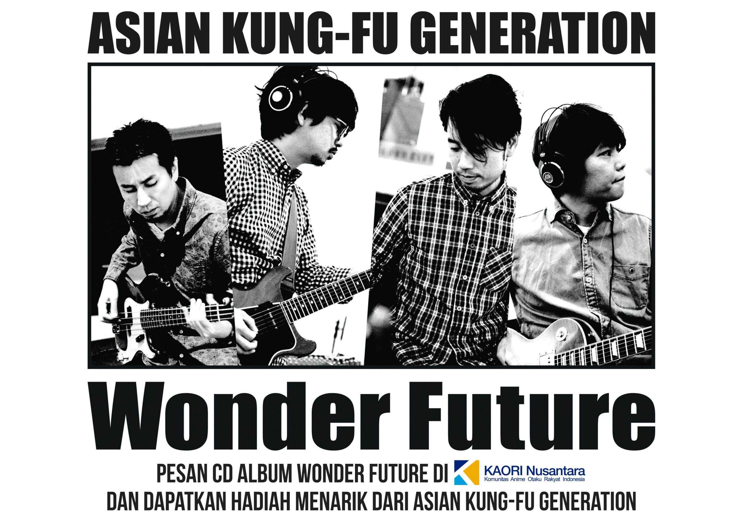 KAORI Nusantara bekerjasama dengan Sony Music Indonesia membuka pemesanan untuk album kedelapan Asian Kung-Fu Generation. Band yang terkenal berkat lagu-lagu mereka yang menjadi soundtrack untuk anime Naruto, Fullmetal Alchemist, Bleach dan Tatami Galaxy ini merilis album kedelapan mereka yang berjudul “Wonder Future”. Album ini direkam di Studio 606 yang merupakan studio kepunyaan Dave Grohl dari Foo Fighters dan memuat 11 lagu.