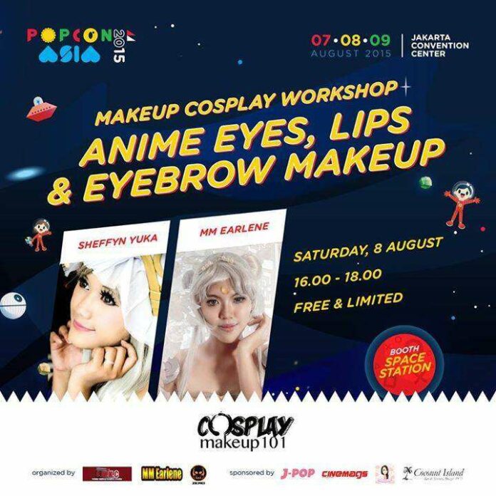 Kali ini dua orang praktisi papan atas Indonesia akan berbagi ilmu mengenai penggunaan make up untuk Cosplay. Bagi anda para praktisi, hadirilah Makeup Cosplay Workshop: Anime Eyes, Lips & Eyebrow Make Up bersama dengan Sheffyne Yuka dan Maria Margaretha Earlene pada hari Sabtu 8 Agustus pukul 16.00 – 18.00 WIB bertempat di Booth Space Station Popcon Asia 2015.