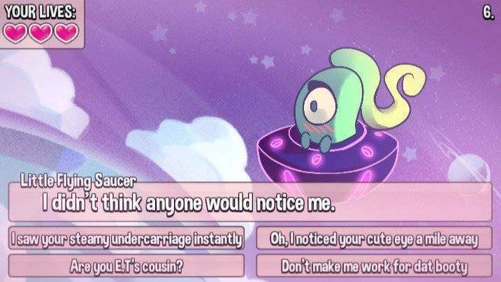 Dalam game berjudul Intergalactic Love Machine pemain akan menjalani kisah cinta dengan berbagai macam alien. Nantinya anda dapat menjalin hubungan dengan para alien yang ada dengan menjawab berbagai pertanyaan dan menjalani percakapan yang ada.