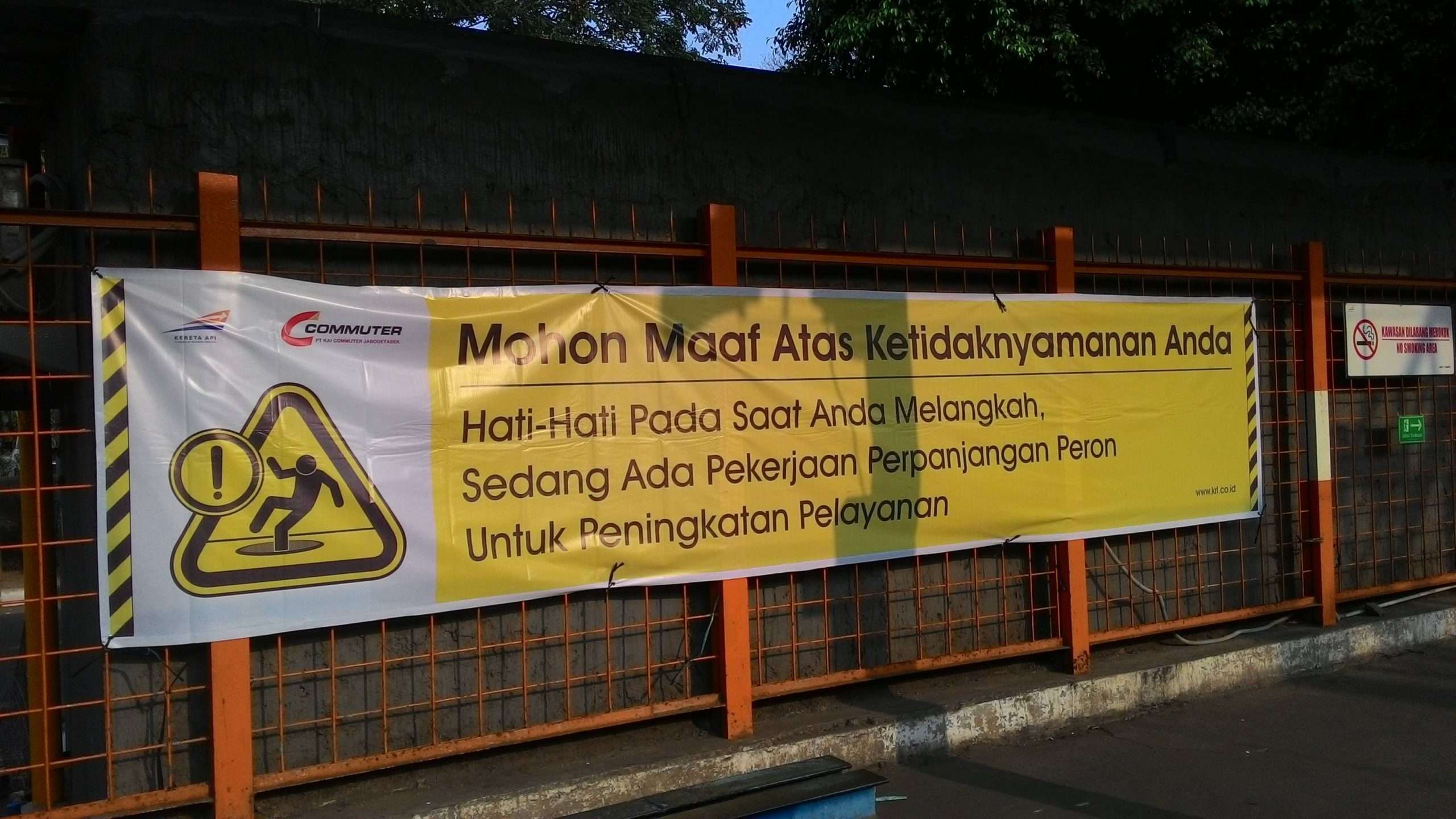 Sosialisasi untuk penumpang mengenai pekerjaan pemanjangan peron di stasiun Duren Kalibata