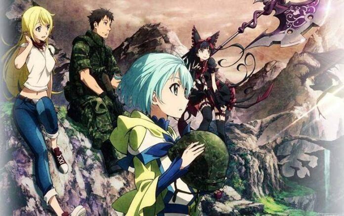Pemerintah mengimkan sekelompok prajurit dari JSDF (Japan Self-Defense Force) ke dunia lain yang berada dibalik gerbang tersebut. Dipimpin oleh Tentara Otaku Itami Youji (Disuarakan oleh Suwabe Junichi), mereka menemukan sebuah desa yang tengah diserang oleh seekor naga. Gadis elf (Hisako Kanemoto) yang selamat dari kejadian tersebut bergabung bersama kelompok tentara tersebut untuk menjelajahi dunia baru yang berbahaya.