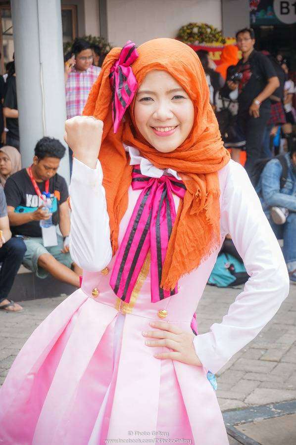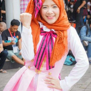 Sheema Sherry, Hijab Fashion Blogger yang mengkreasi-kan Kostum Honoka Start:Dash nya menjadi seperti ini