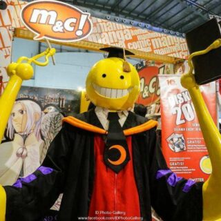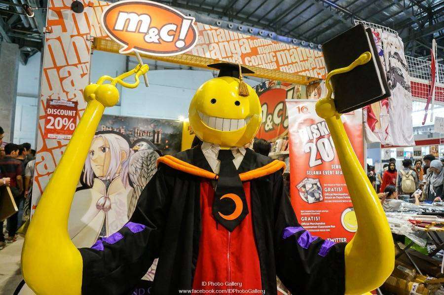 Koro-Sensei sedang menjaga booth M&C di AFAID 2015. Apakah Koro-Sensei menjual buku Cara Assasination yang baik dan benar?