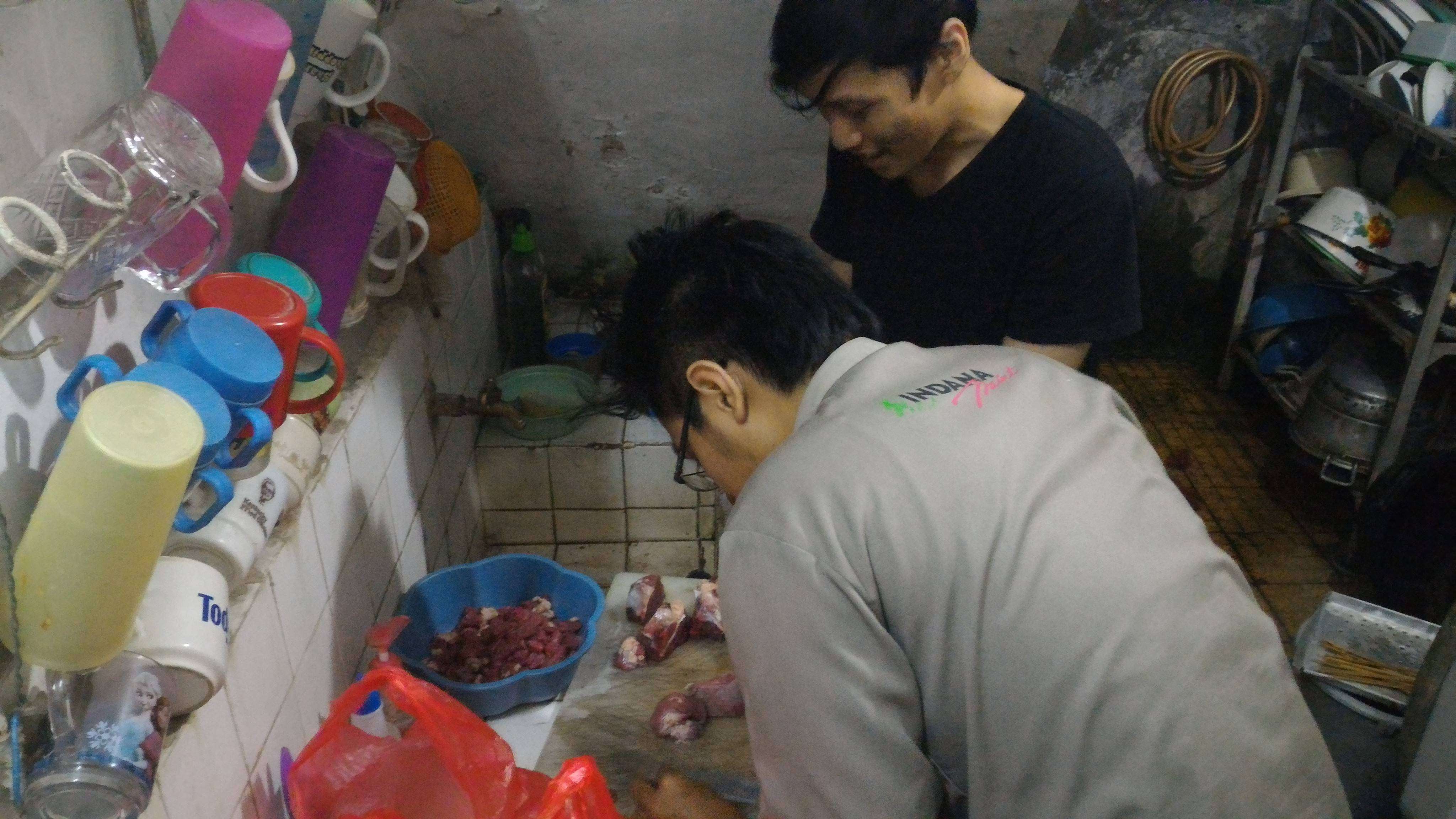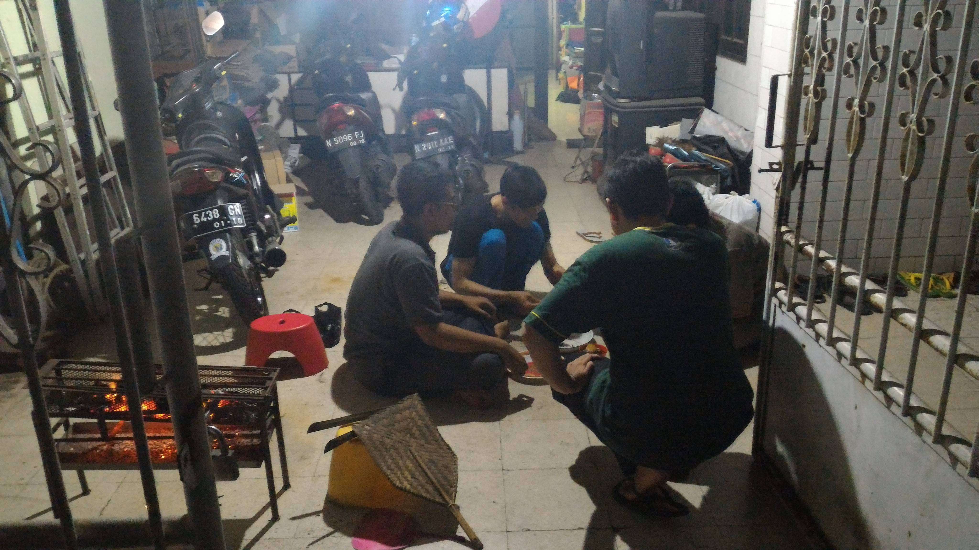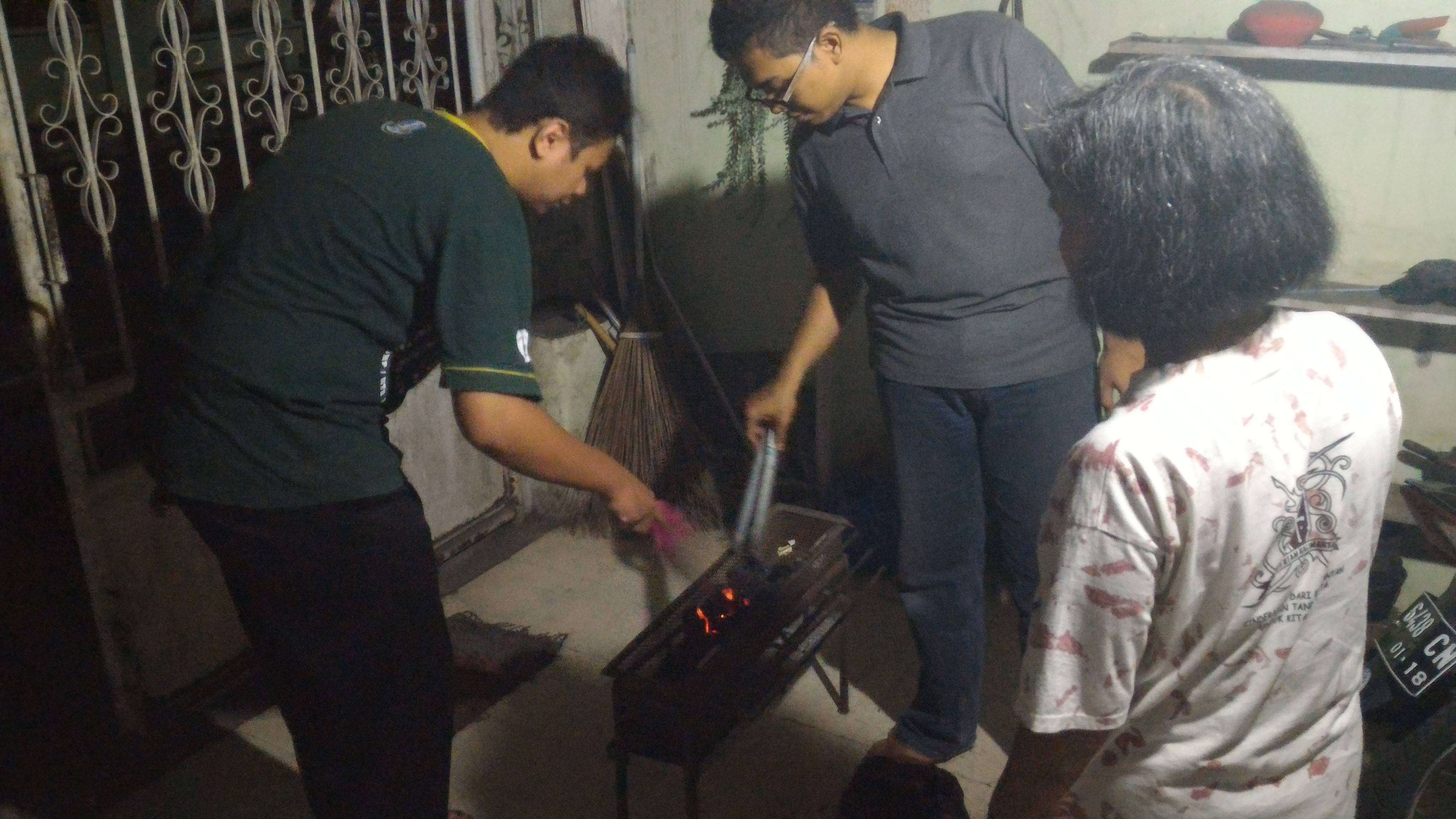 Kegiatan berlangsung dari selepas maghrib. Anggota yang telah terkumpul adalah anggota Faid, anggota Dimdim selaku tuan rumah dan Direktur Komunitas Ronal. Langsung saja kami membagi tugas, Ronal dan Faid mempersiapkan daging untuk disate, Dimdim mempersiapkan bumbu dan Naufal menyiapkan pembakaran sate di pelataran rumah. Namun, karena Naufal orangnya udik maka terpaksa ganti pos, Dimdim di pembakaran dan Naufal di bumbu.