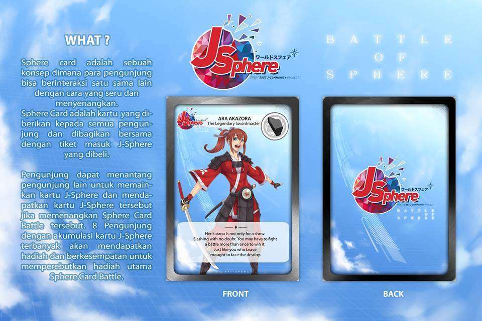 Lalu untuk memperiah suasana, kalian dapat duel dengan pengunjung lain dengan menggunakan Sphere Card! 8 Pengunjung yang telah mengumpulkan Sphere Card terbanyak dapat memperebutkan hadiah utama dari Sphere Card Battle. Peraturan Sphere Card Battle dapat dilihat di sini.