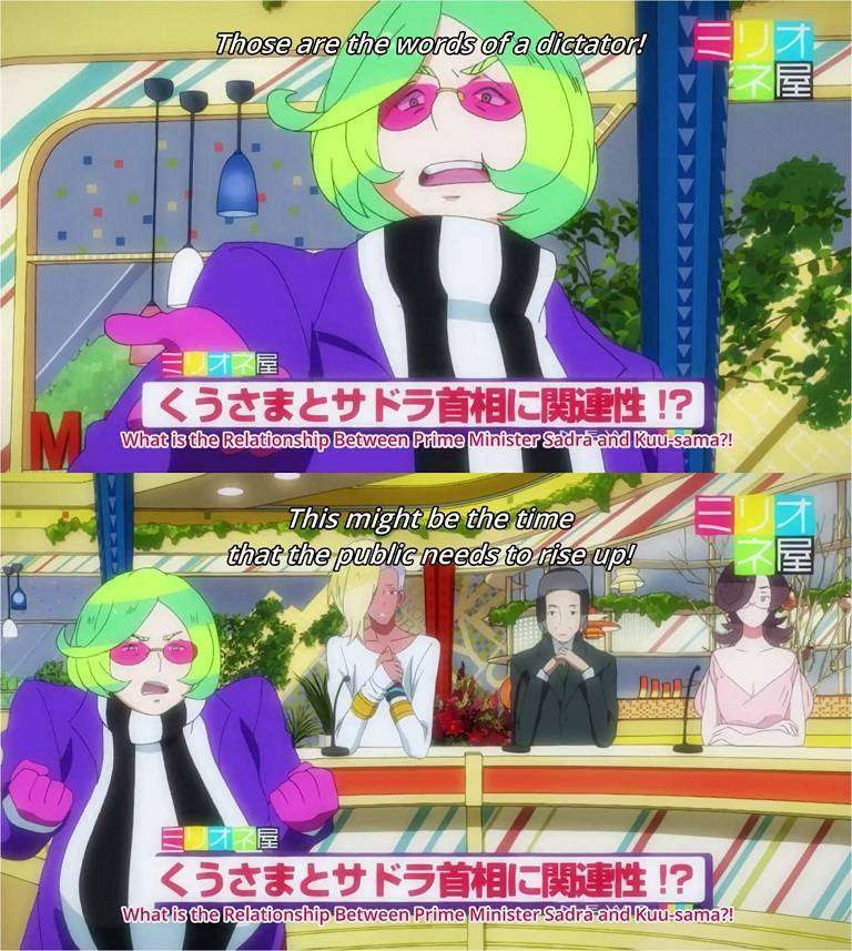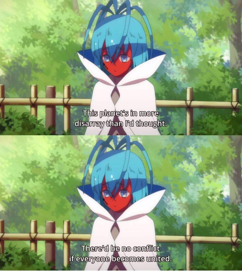 Dari percakapan di episode keempat, Tsubasa dan Gel Sadra secara jelas melihat konflik sebagai masalah, karena mereka melihat perselisihan pendapat membuat manusia menjadi saling memusuhi dan menyakiti satu sama lain. Untuk itu mereka ingin menghilangkan perbedaan pendapat dan menyatukan pikiran dan perasaan orang-orang. Kalau semua orang memiliki aspirasi dan perasaan yang sama, maka mereka bisa memutuskan dan melaksanakan kegiatan bersama dengan tenang tanpa saling melawan dan menggunakan kekerasan terhadap satu sama lain.