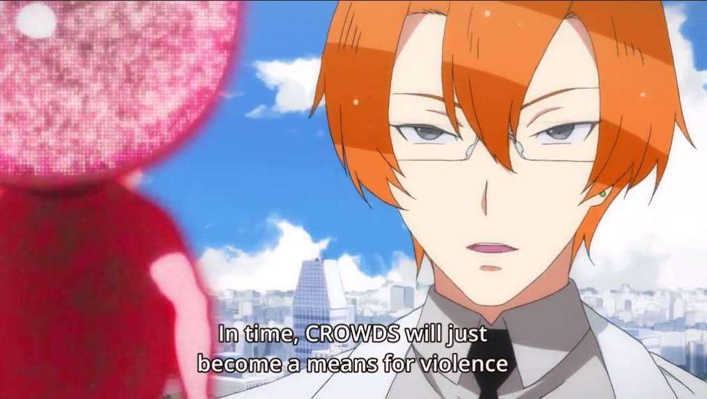 Rui Ninomiya, selaku pembuat jaringan media sosial GALAX yang juga menyebarkan aplikasi untuk menggunakan CROWDS di akhir season pertama, menunjukkan pemikiran yang berorientasi pada pengelolaan rasional teknologi CROWDS. Walaupun ia paham CROWDS memiliki potensi disalahgunakan dan menimbulkan masalah (karenanya ia sempat membatasi penyebaran CROWDS di season pertama), namun ia percaya selama digunakan oleh orang-orang yang tepat, CROWDS dapat digunakan untuk kebaikan dan mengatasi masalah. Baginya adalah hal yang penting untuk membuat CROWDS tersedia bagi orang-orang yang akan menggunakan teknologi tersebut untuk tujuan baik sehingga mereka memiliki kemampuan untuk ikut mengatasi masalah-masalah dalam masyarakat.