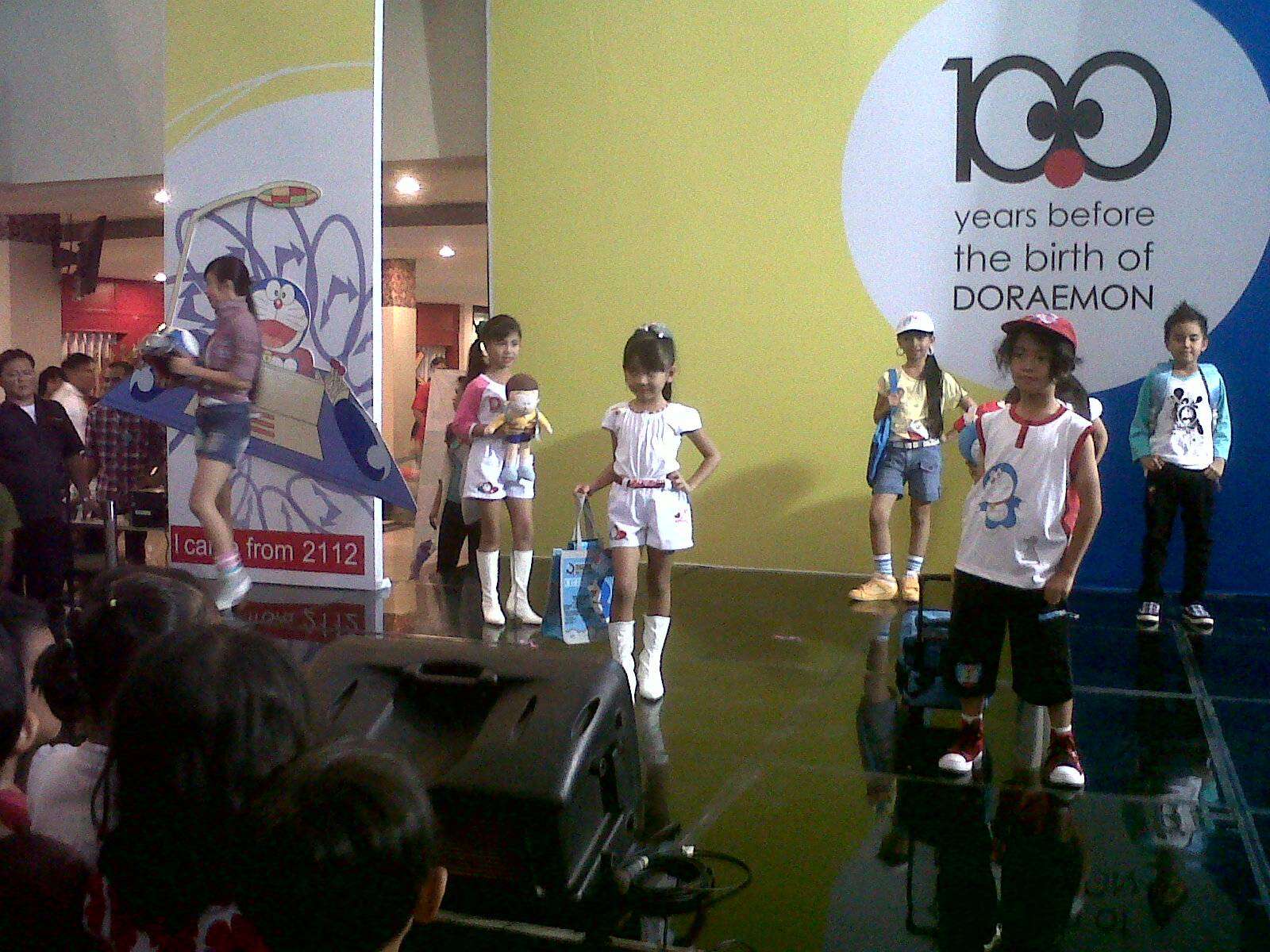Acara kembali dilanjutkan dengan peragaan fashion show bertema merchandise Doraemon. Beragam busana dan merchandise bertemakan Doraemon diperagakan di atas catwalk oleh para peragawati muda yang cantik.